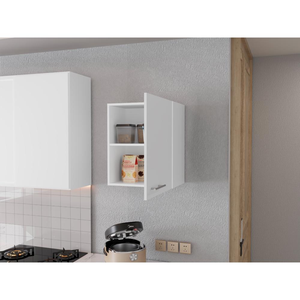 Alacena, con una puerta abatible, espacio para guardar objetos como libros y decoración y facil instalación.