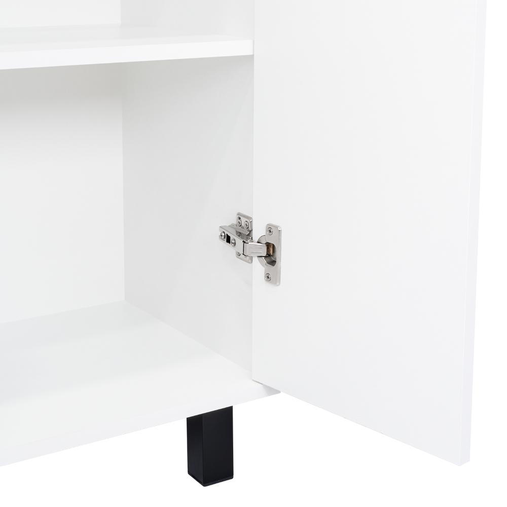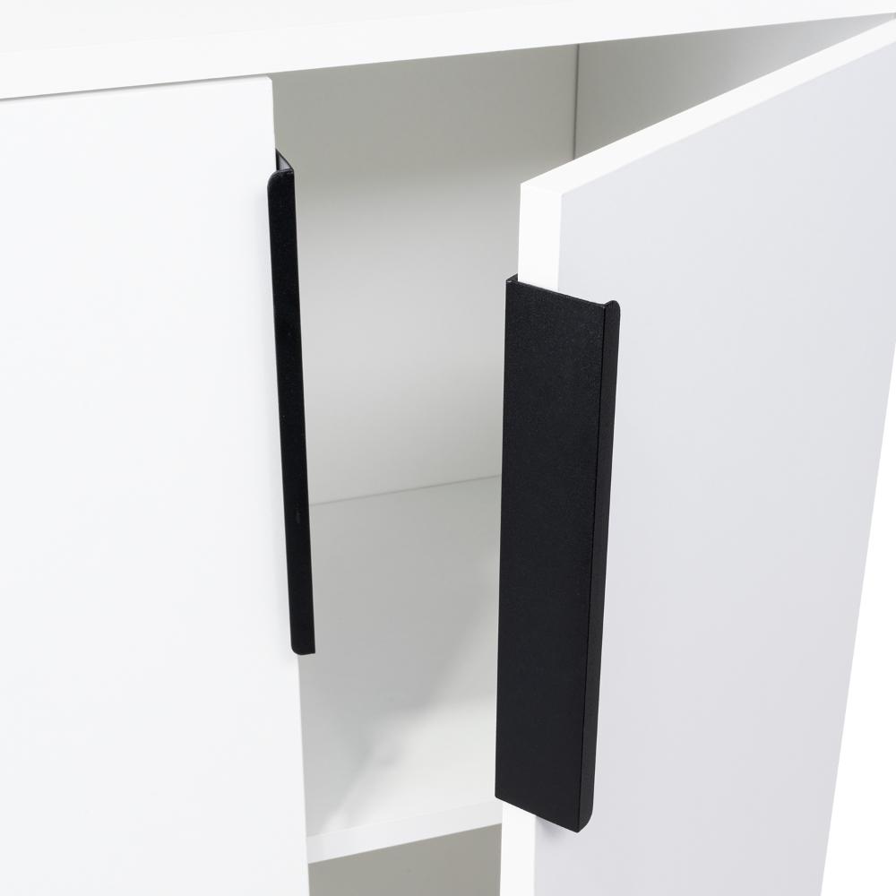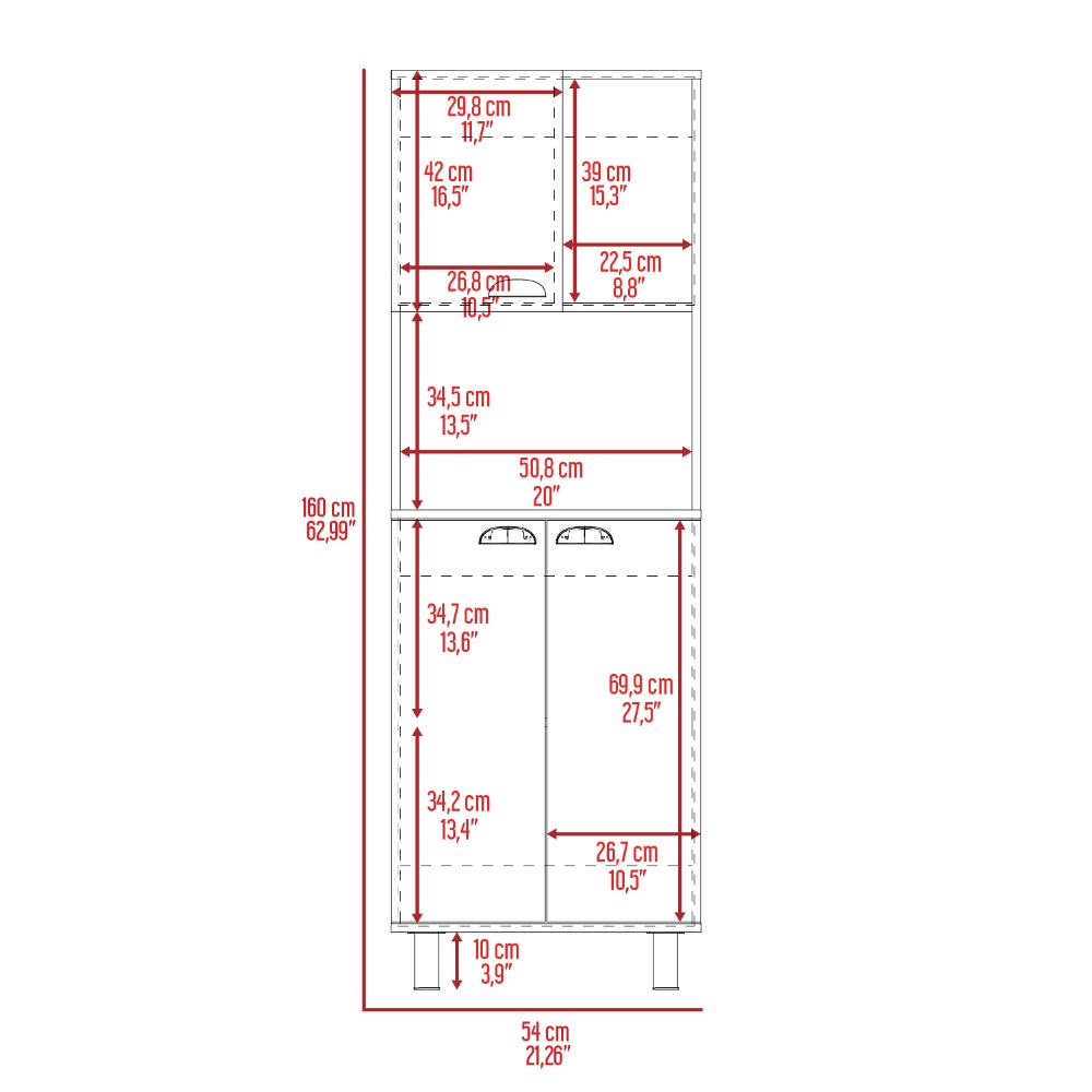 Alacena, con amplios espacios para almacenamiento, patas y manijas en acero, diseño moderno, facil armado.