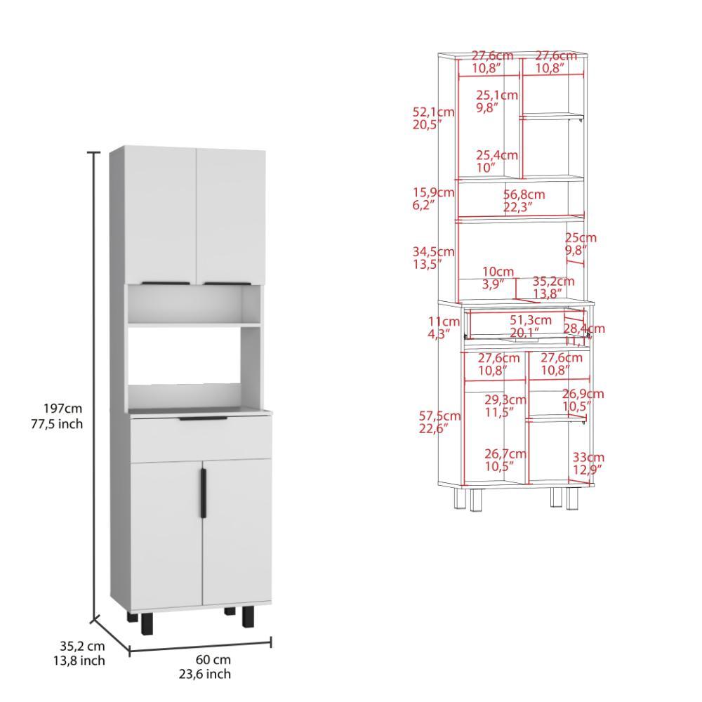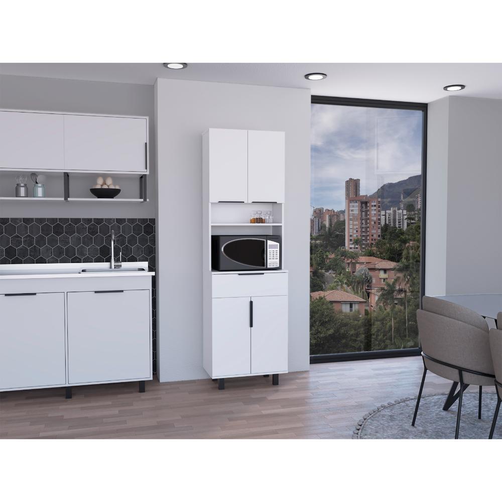 Alacena Oshawa, Blanco, contien un cajon y cuatro puertas de facil ensamble