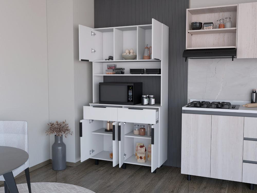 Alacena Oshawa, Blanco, contiene dos cajones y seis puertas de fácil ensamble