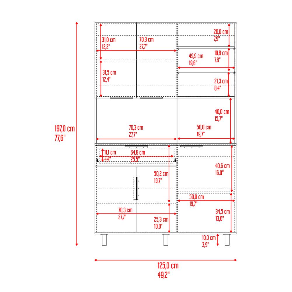 Alacena, con amplios espacios para almacenamiento, patas y manijas de acero, diseño moderno, fácil armado