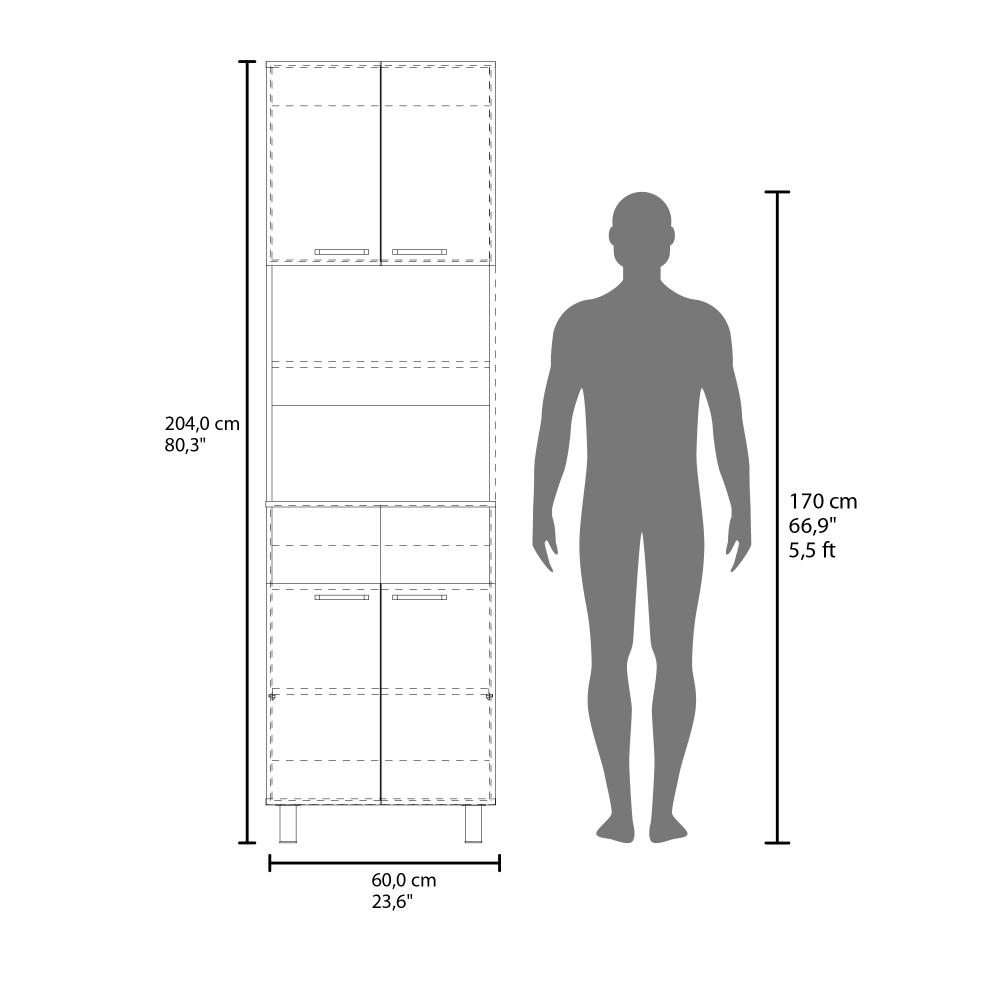 Módulo Microondas, con espacio para microondas y para almacenar objetos 4 puertas abatibles, 2 entrepaños,