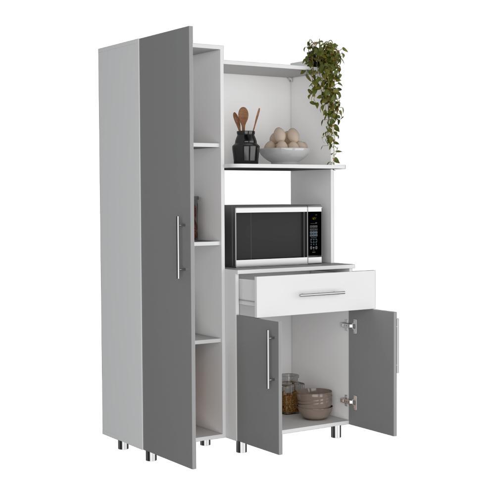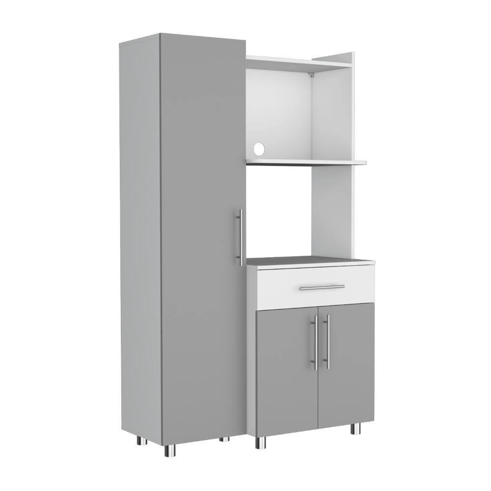 Alacena Panter, Gris y Blanco Duqueza, con espacio para microondas puertas abatibles y un cajon