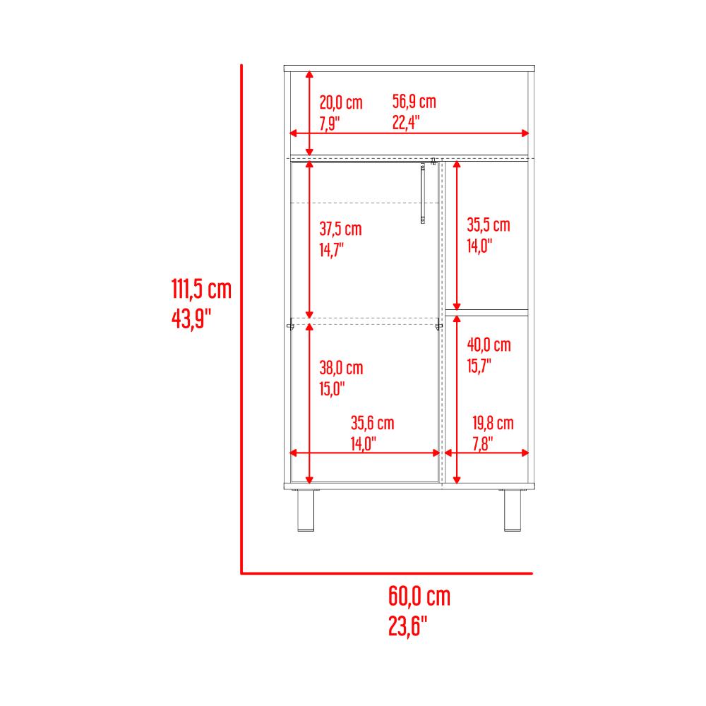 Archivador, con una puerta abatible y 5 compartimentos para colocar objetos