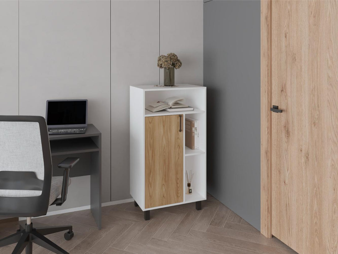 Archivador Bryce, Blanco Duqueza y Fresno Europeo, con una puerta abatible