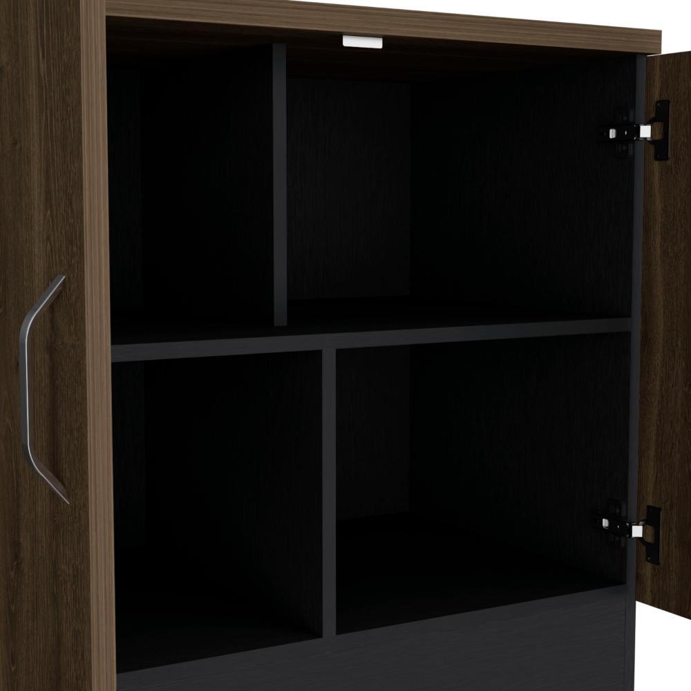 Elaborado en Madera aglomerada MDP, recubierta con láminas melamínicas de excelente calidad, en color Milan y Wengue.