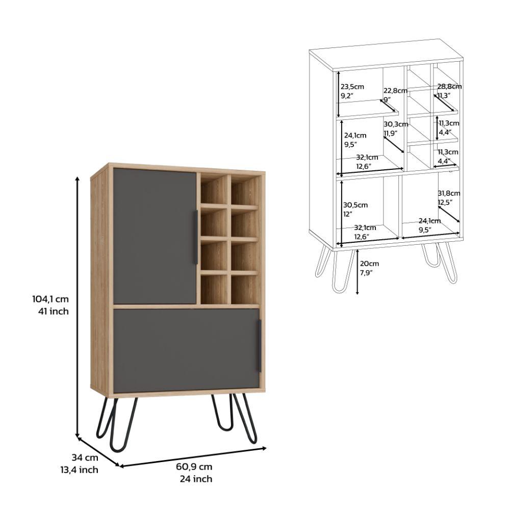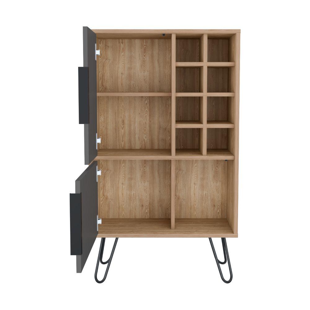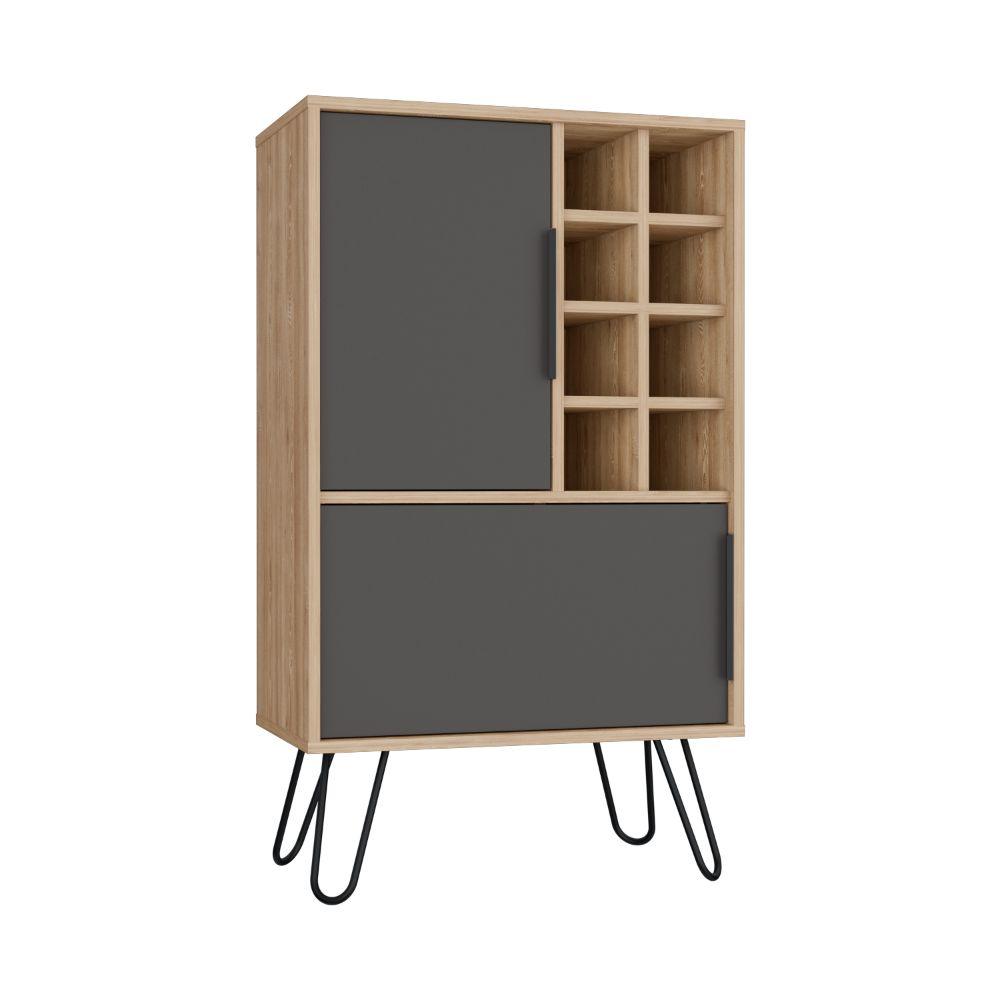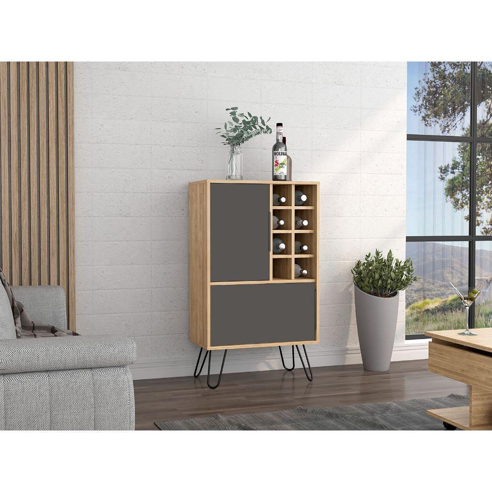 Bar Bajo Vany, Miel y Plata Oscuro, con Espacio Para Almacenar Botellas y Copas de Vino ZF