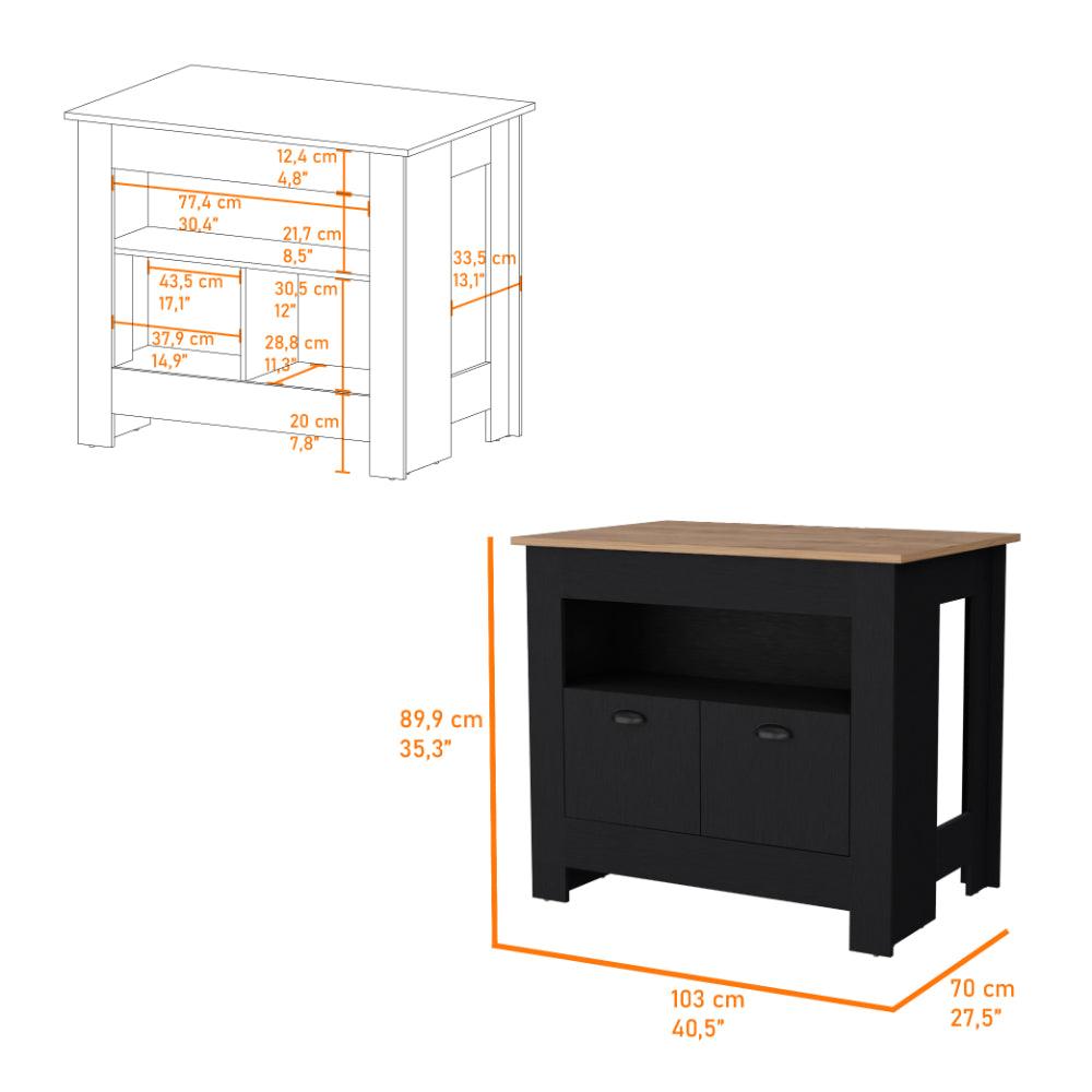 Barra de Cocina, con dos puertas abatibles, manijas metálicas, amplios espacios de almacenamiento.