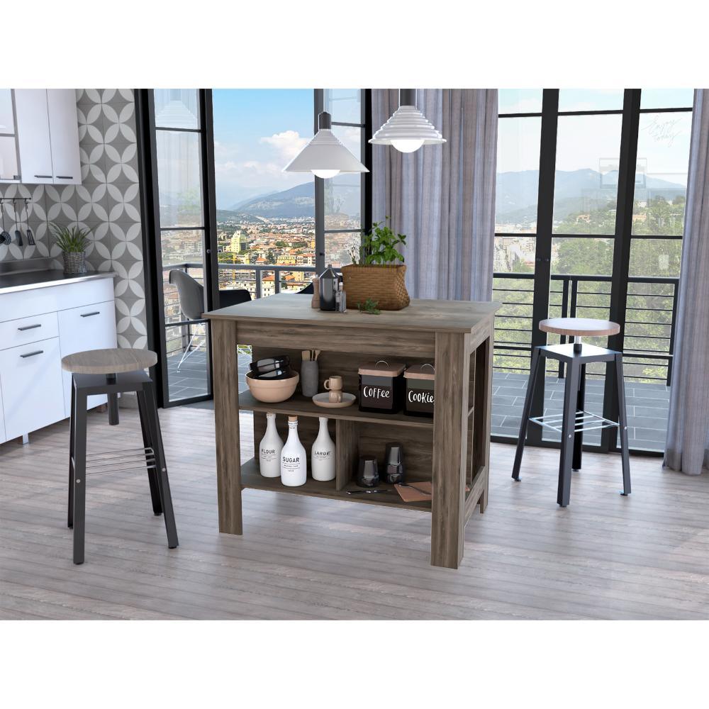Barra de Cocina, Con amplia superficie en la mesa, dos entrepaños para ubicar botellas, copas y otros elementos.
