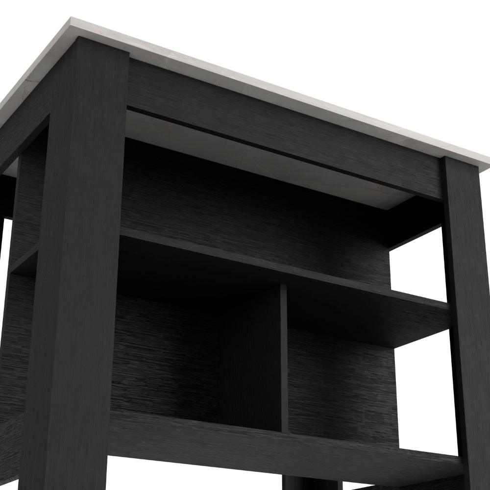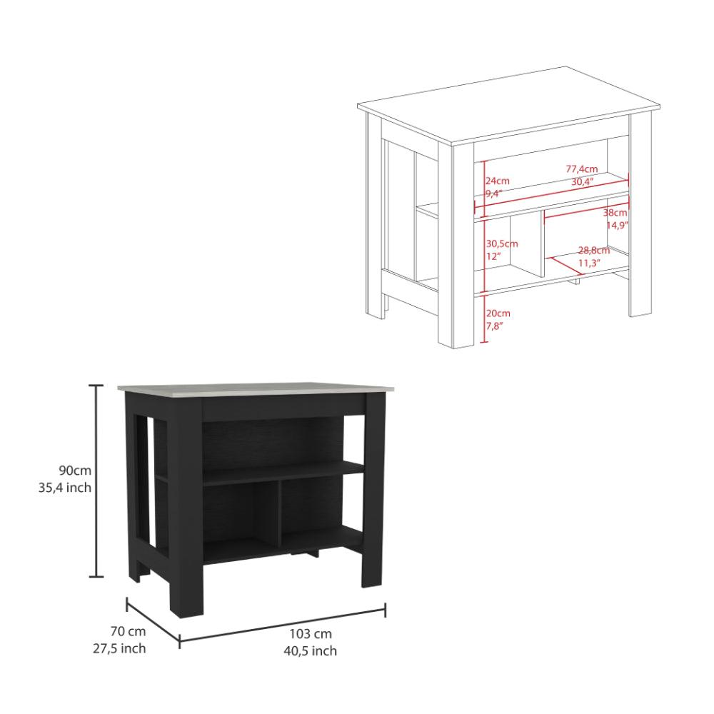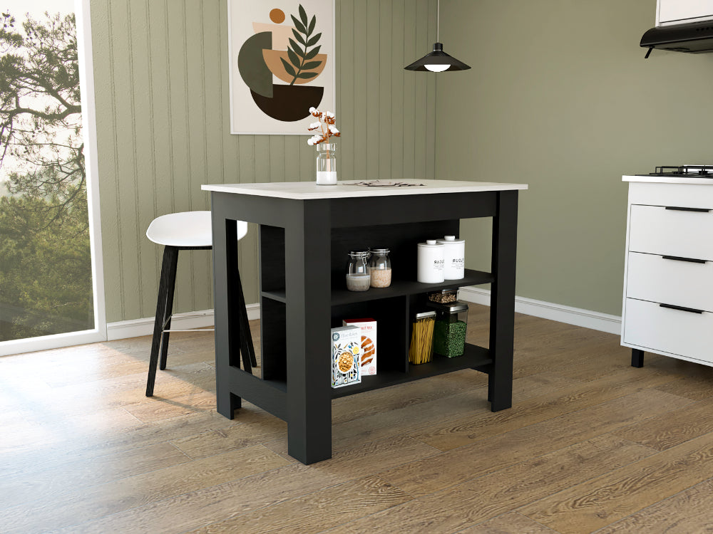 Barra de Cocina, con amplia superficie en la mesa, dos entrepaños para ubicar botellas, copas y otros elementos.