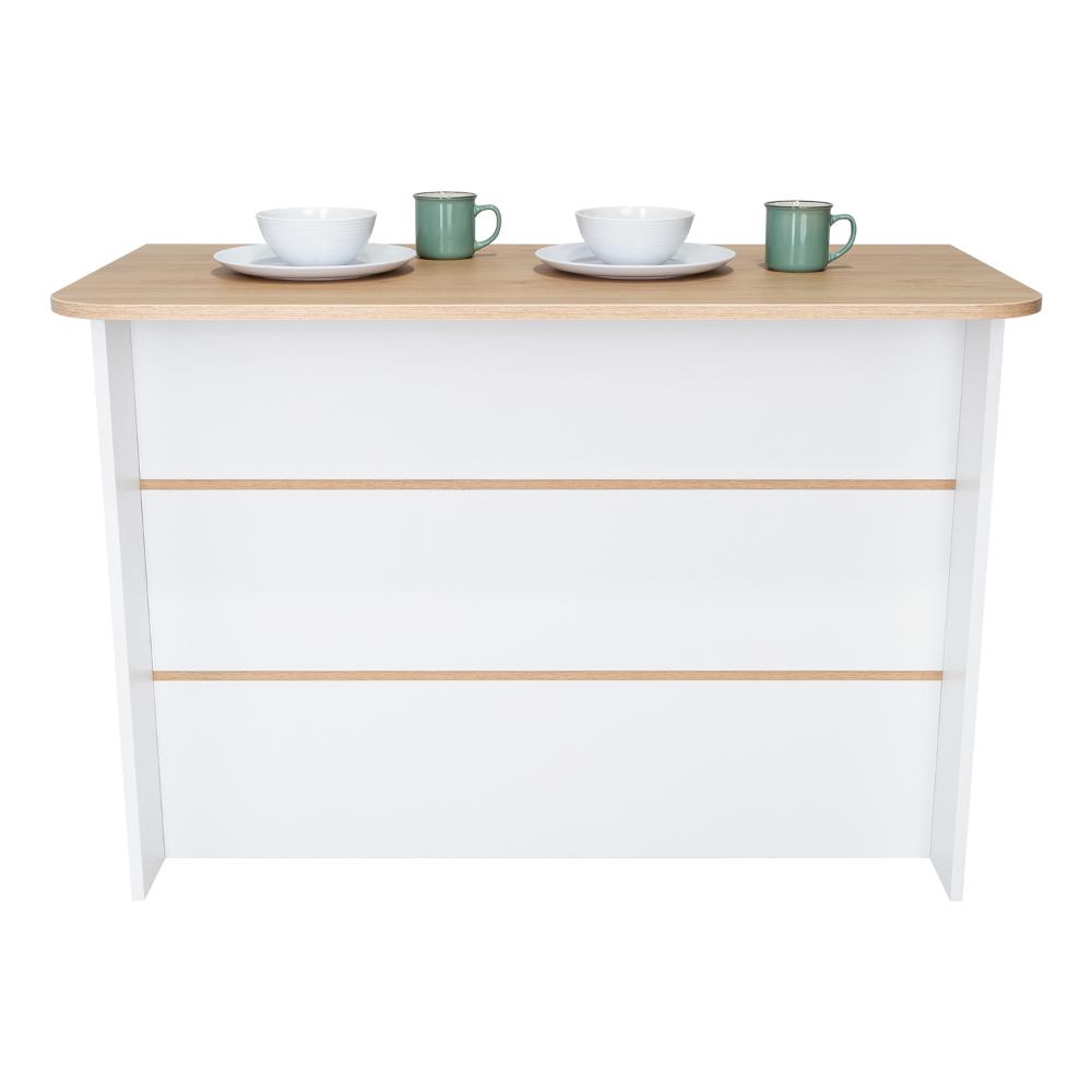 Barra de Cocina Diamante, Blanco y Beige, con Dos Entrepaños