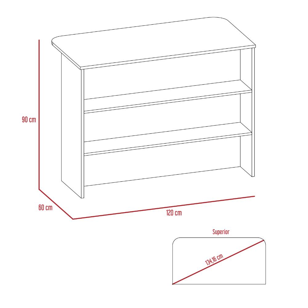 Barra de Cocina Diamante, Blanco y Castaño, con Dos Entrepaños
