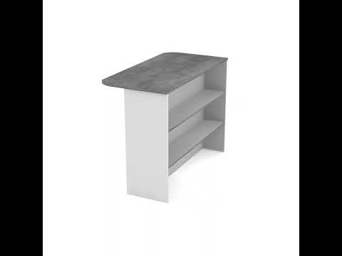 Barra de Cocina Diamante, Blanco y Cemento, con Dos Entrepaños
