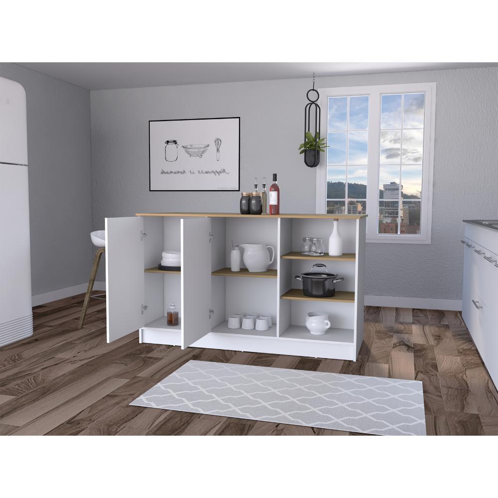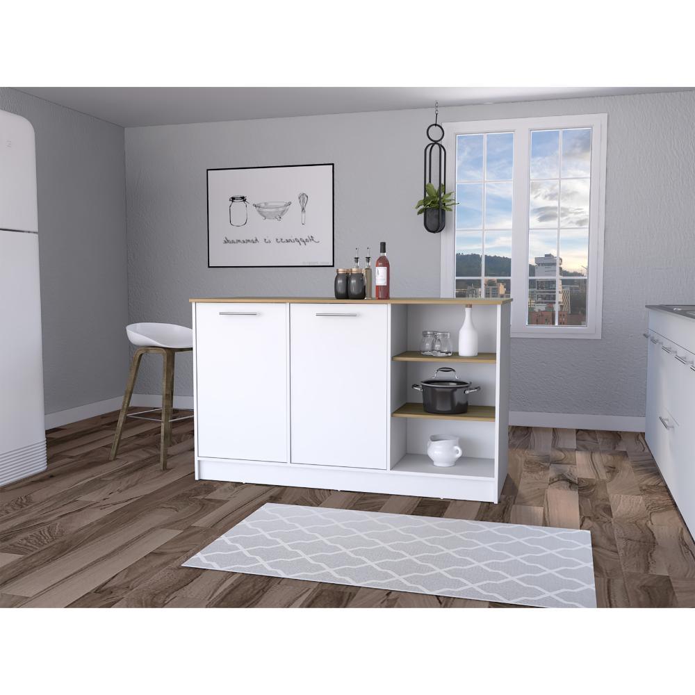 Barra de Cocina Lugano, Blanco Duqueza y Fresno Europeo, con Dos Puertas Abatibles ZF