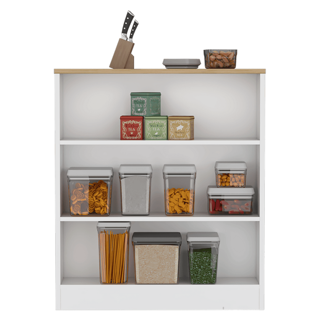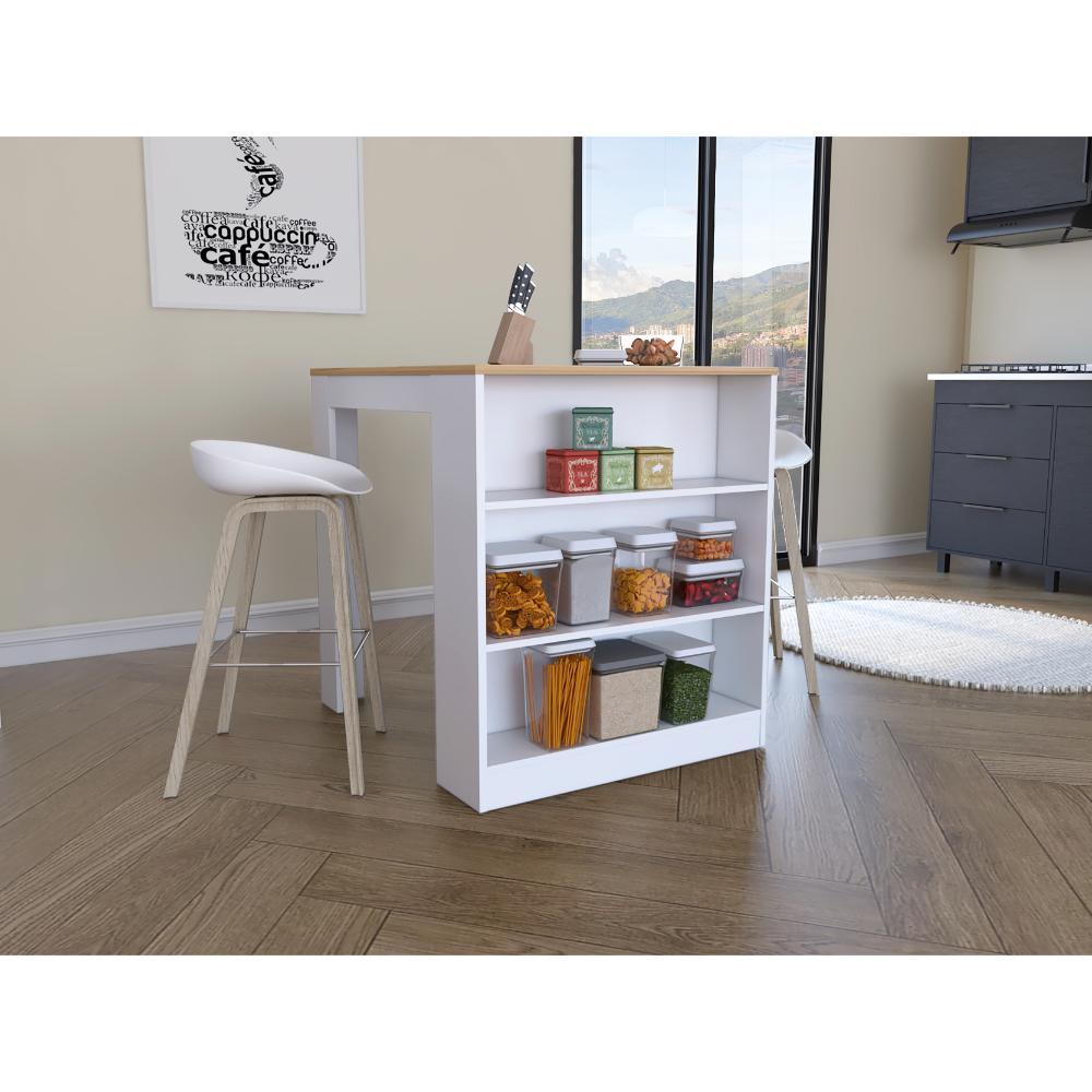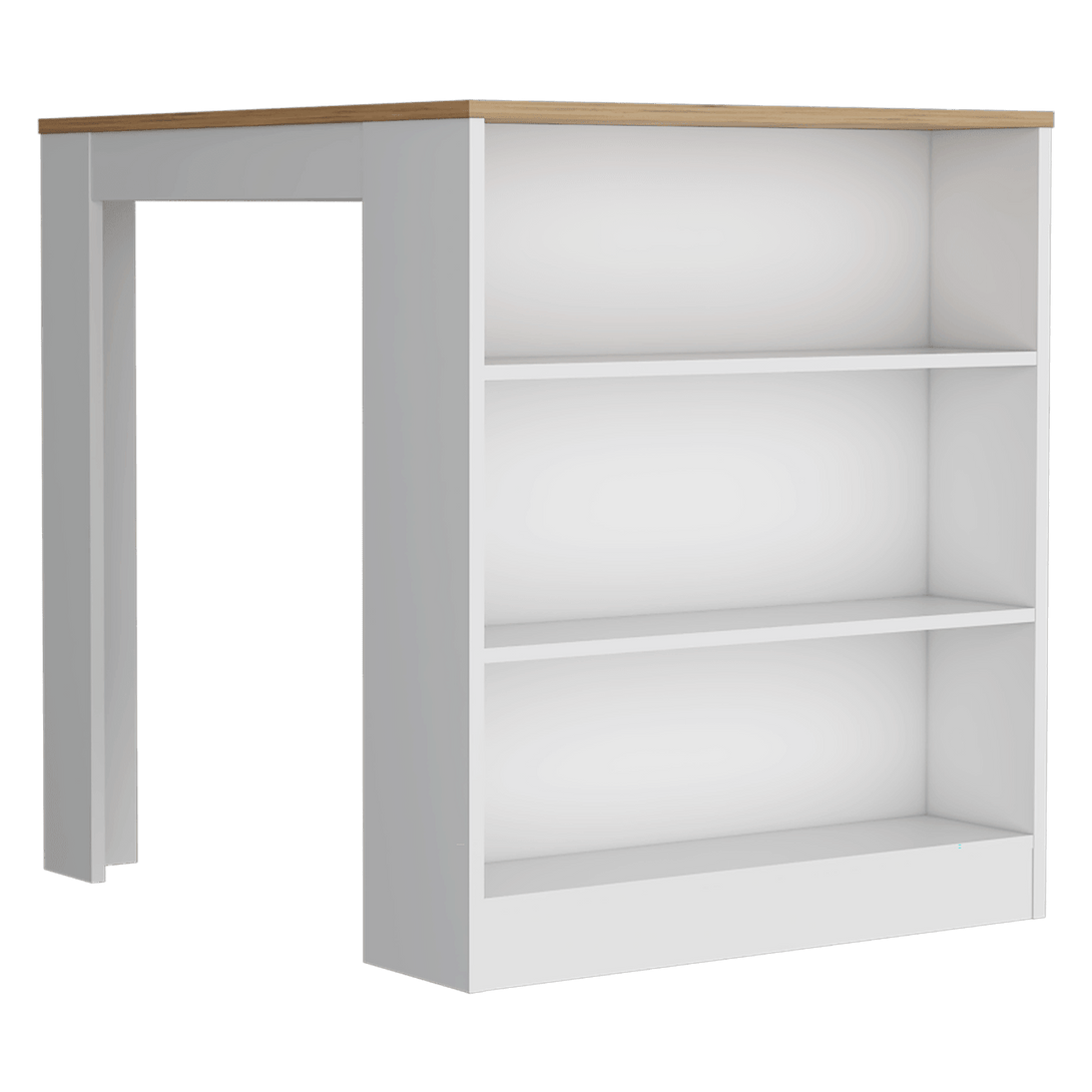 Barra de Cocina Mayer, Blanco y Macadamia, con tres entrepaños para ubicar vasos y frascos