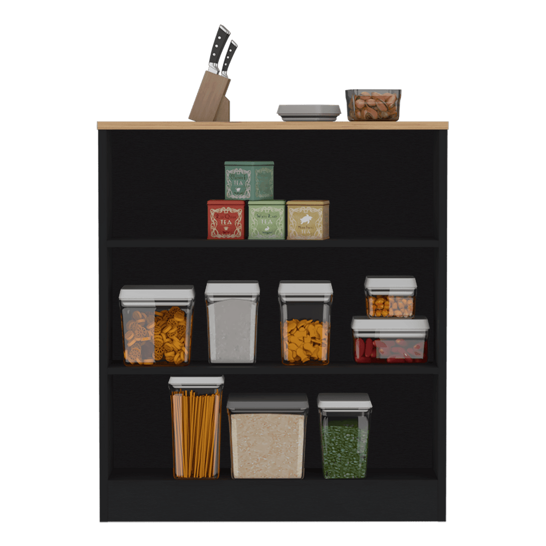 Barra de Cocina Mayer, Wengue y Macadamia, con tres entrepaños para ubicar vasos y frascos