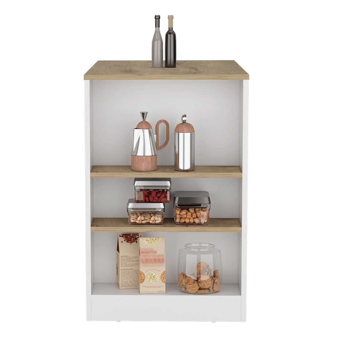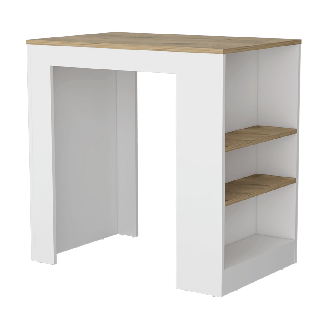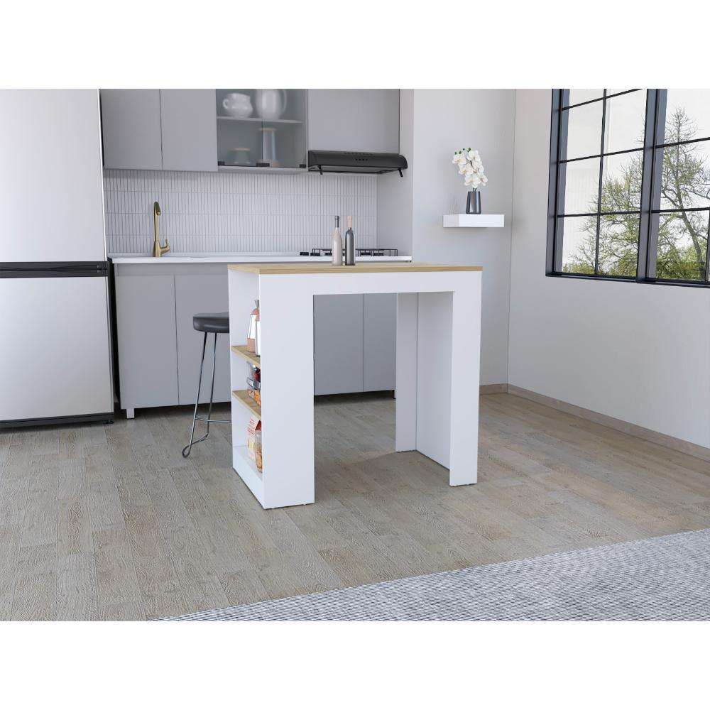 Barra de Cocina Portre, Blanco y Macadamia, con Amplia Superficie En La Mesa