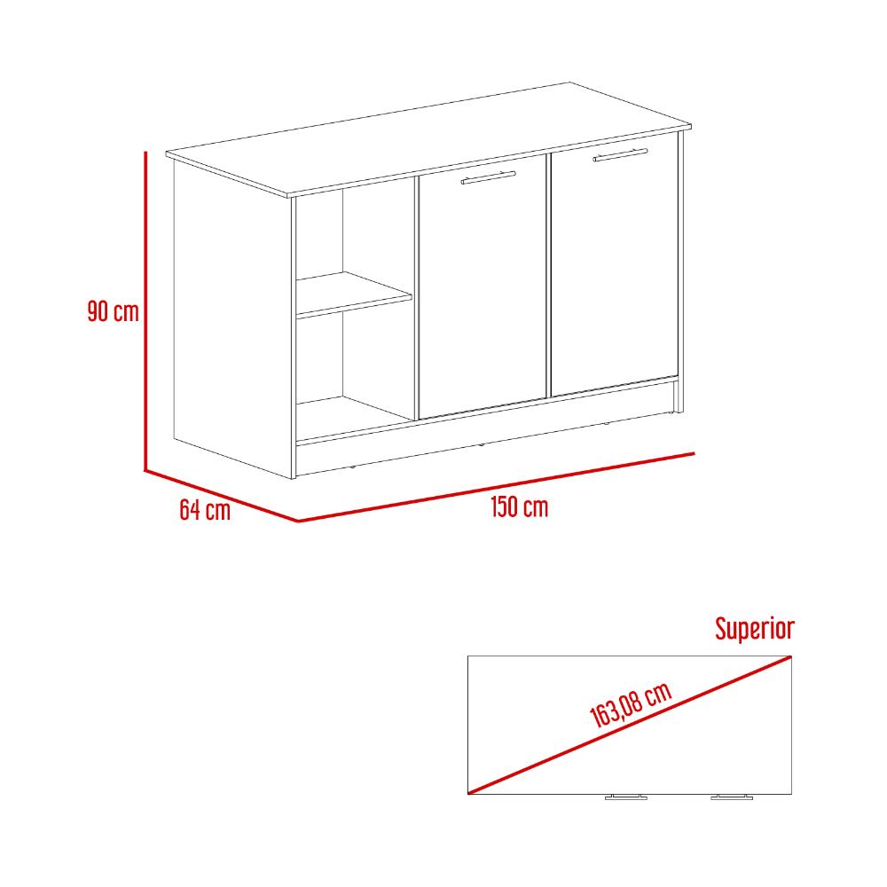 Elaborado en Madera aglomerada MDP, recubierta con láminas melamínicas de excelente calidad, en color Wengue y Piedra.