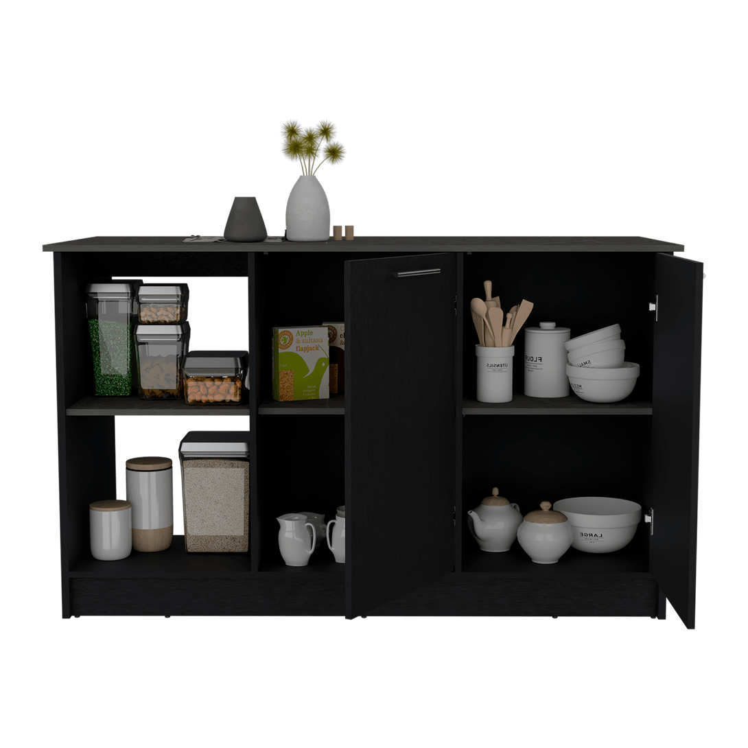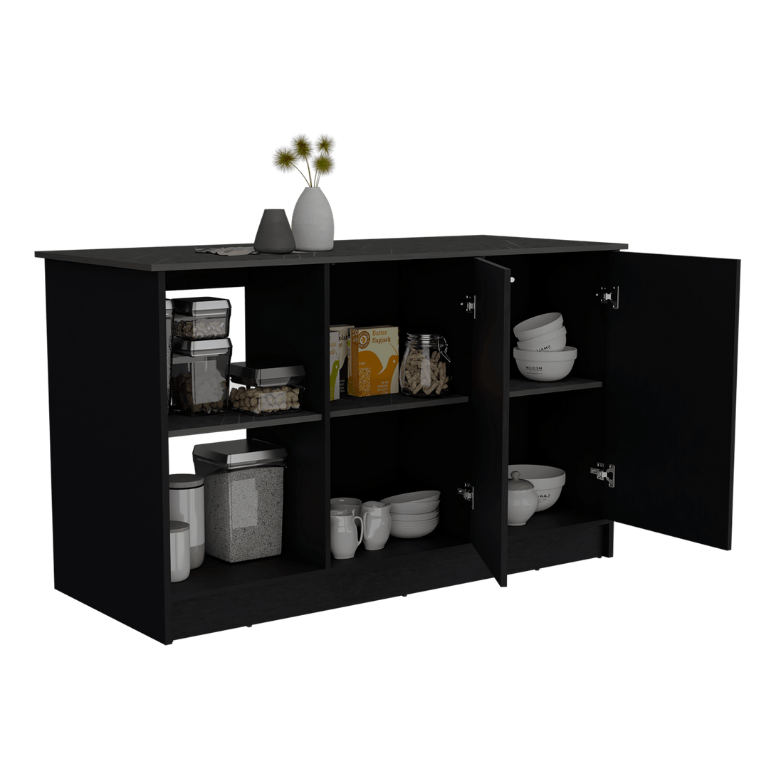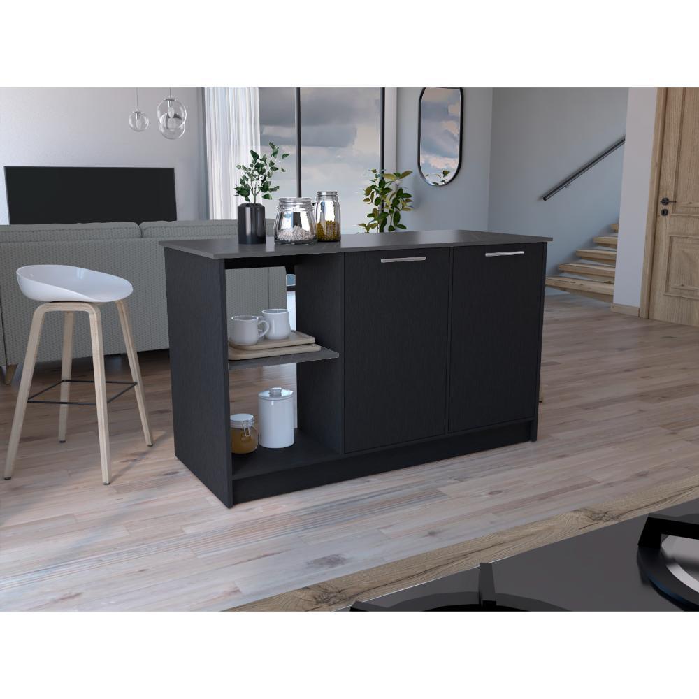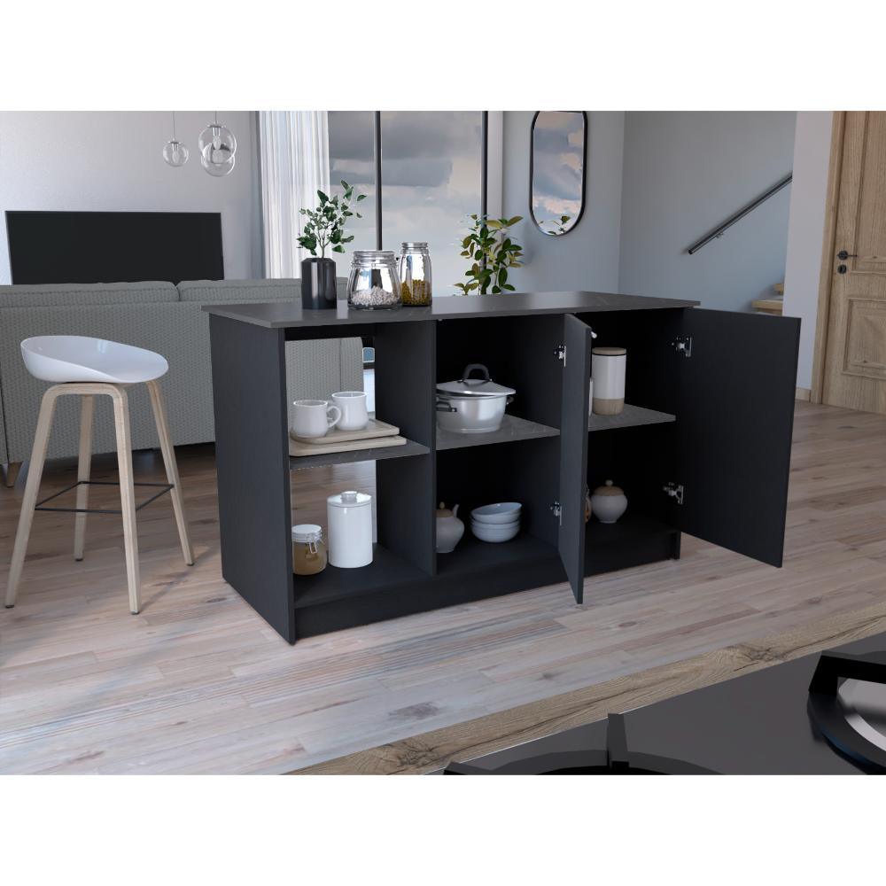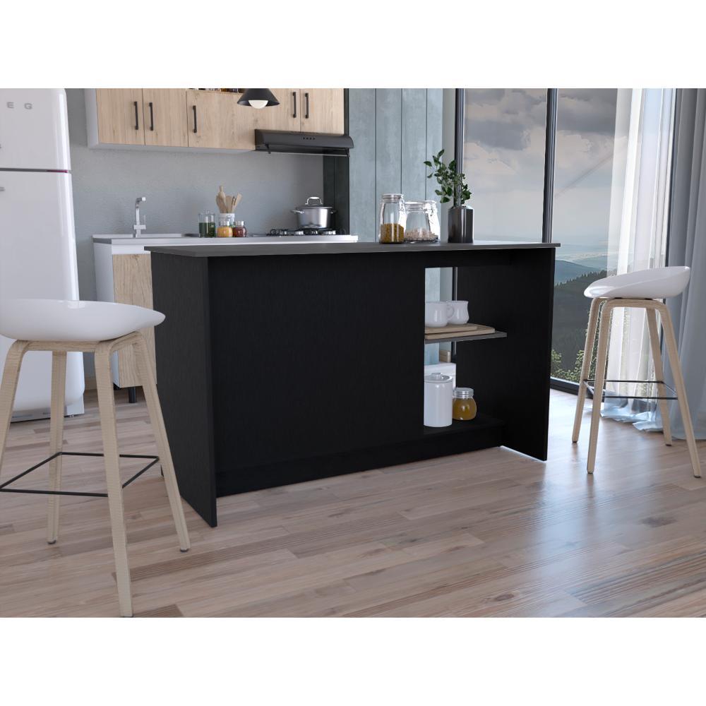 Barra de Cocina Samara, Wengue y Piedra, con Tres Entrepaños