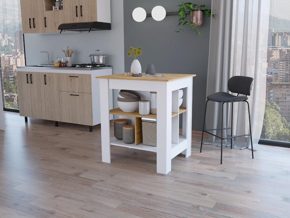 Barra de Cocina Soler, Macadamia y Blanco, diseño moderno y fácil armado