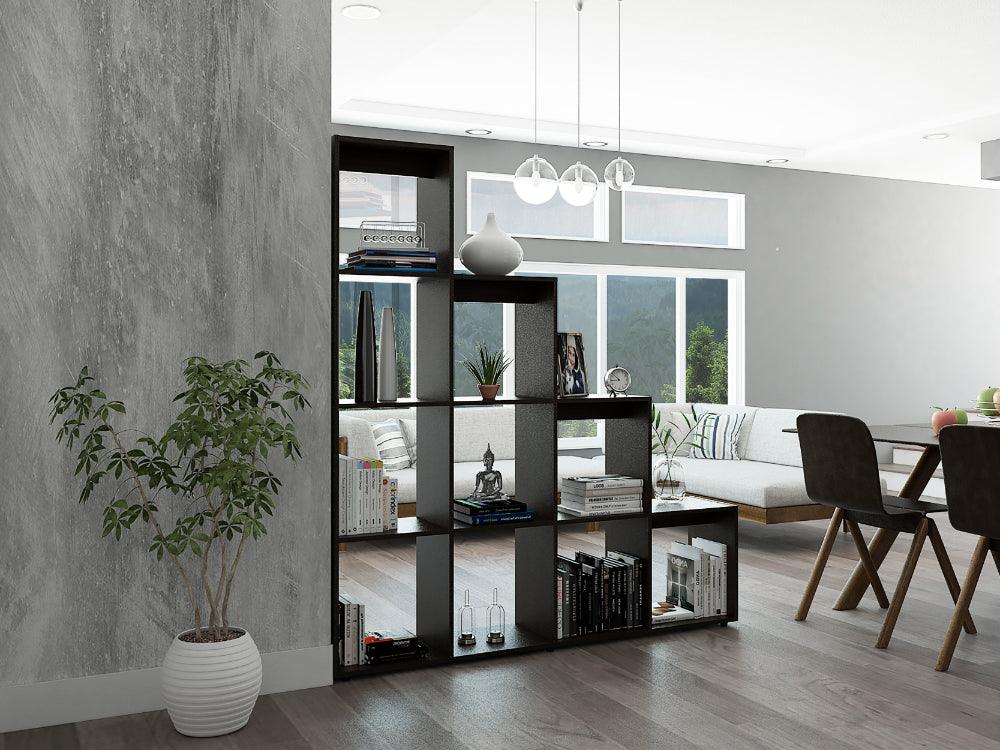 Biblioteca, con excelente capacidad de almacenamiento, espacio para libros y objetos decorativos, permite ubicarse como divisor de espacios, fácil instalación y diseño contemporáneo.