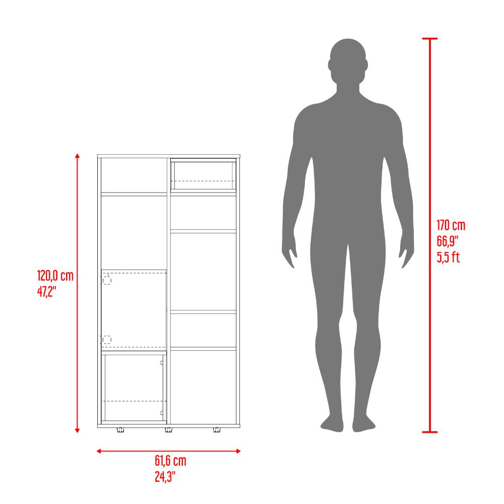 Elaborado en Madera aglomerada MDP, recubierta con láminas melamínicas de excelente calidad, en color Bardolino y Blanco.