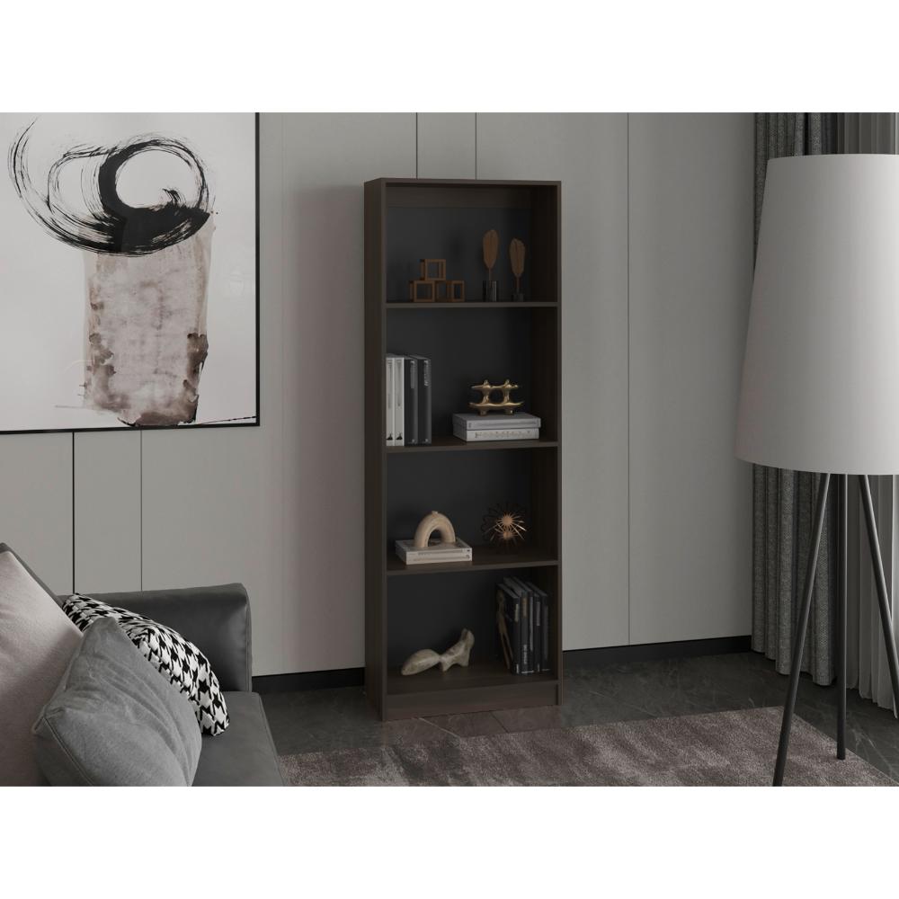 Biblioteca, con cuatro entrepaños para ubicar libros y elementos decorativos.