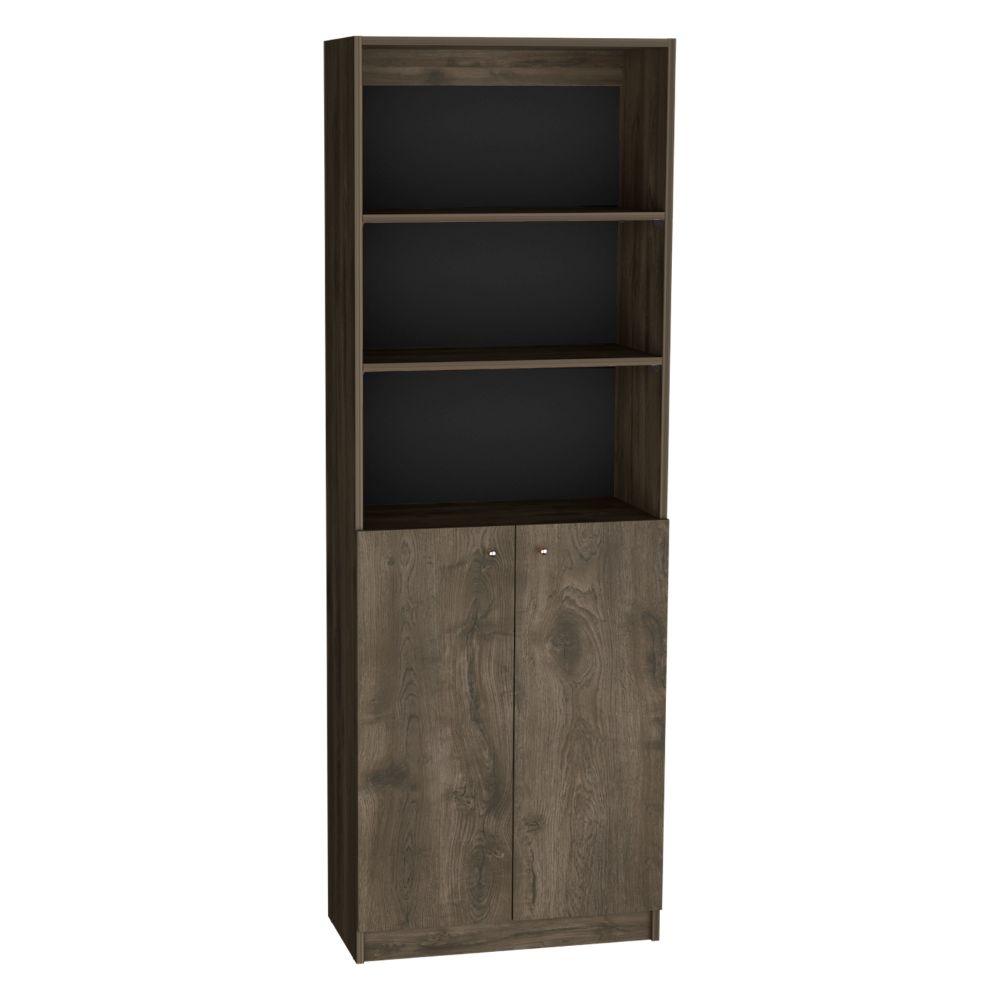 Biblioteca Home, Nogal y Wengue, con Cinco Entrepaños y Dos Puertas Abatibles ZF