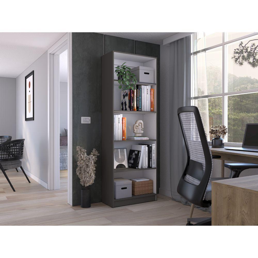 Biblioteca Home, Plata Oscuro y Blanco, con Cinco Entrepaños ZF