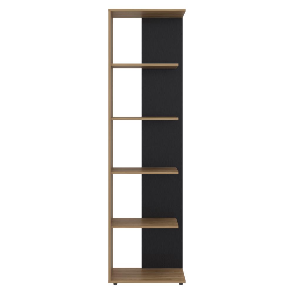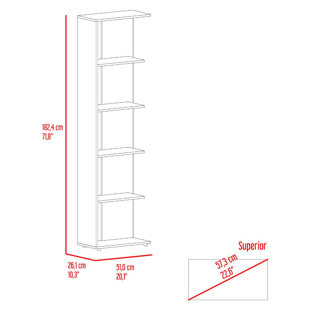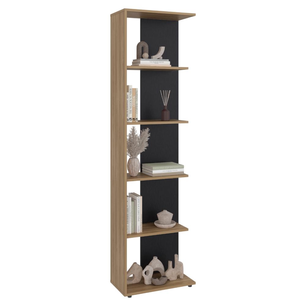 Biblioteca, con espacios para libros y objetos decorativos. con cinco entrepaños