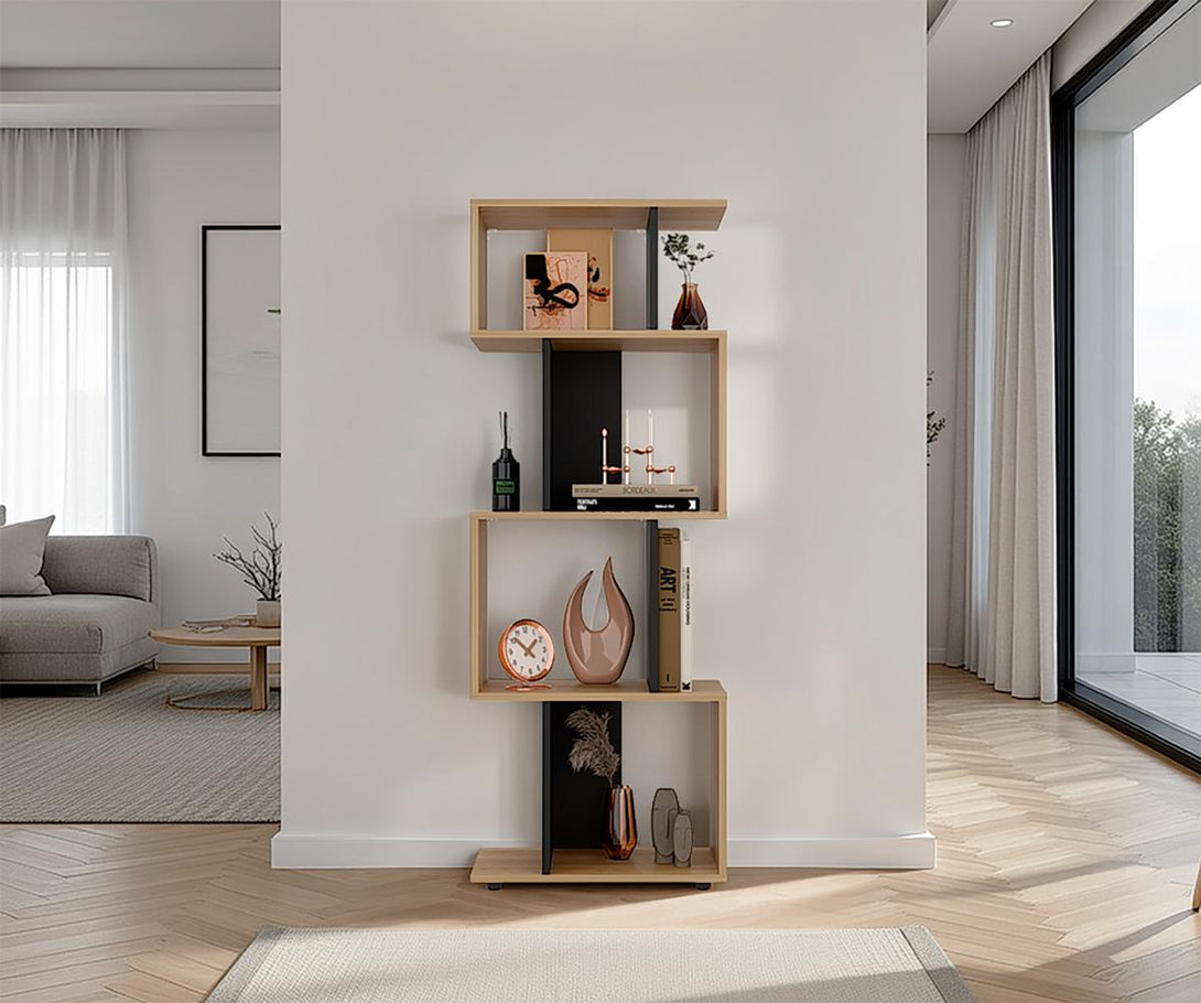 Biblioteca York, Fresno Europeo y Wengue, con espacio para libros y objetos decorativos