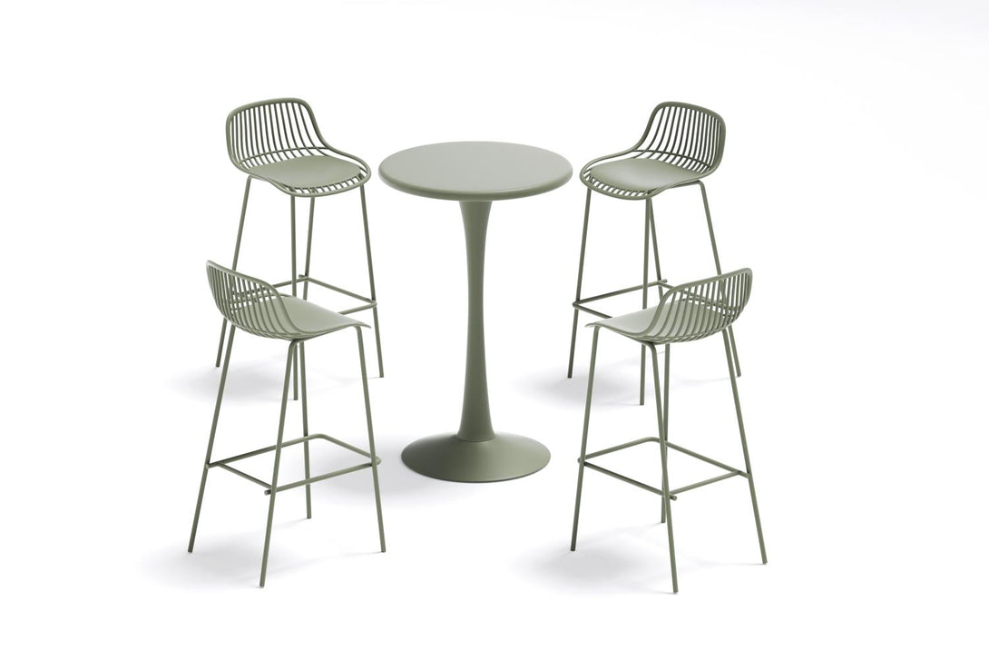 Butaco para Bar Tulum, Color Verde Olivo, Diseño Moderno