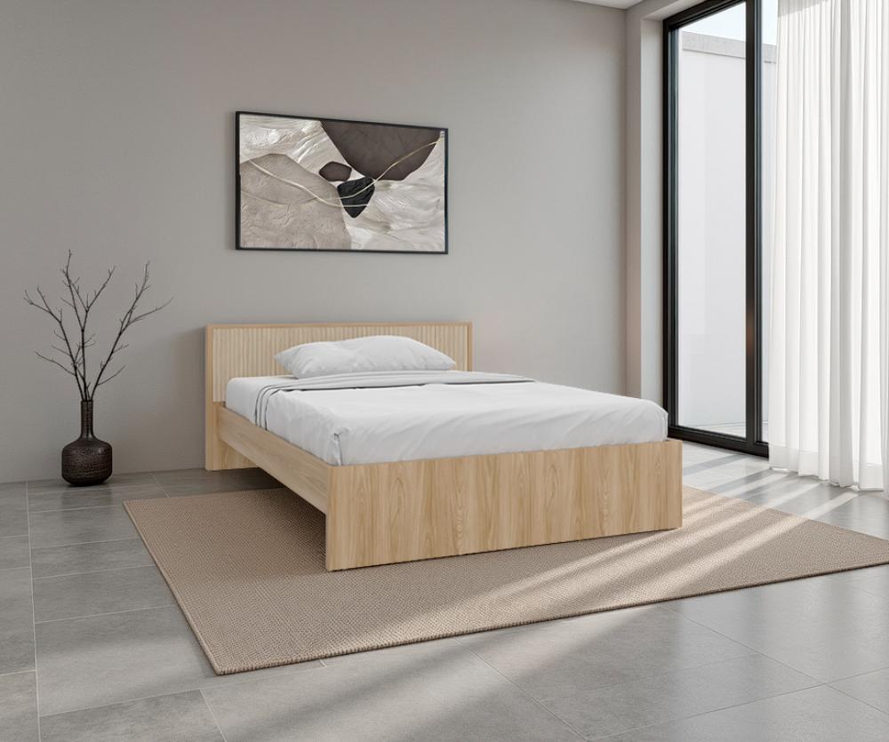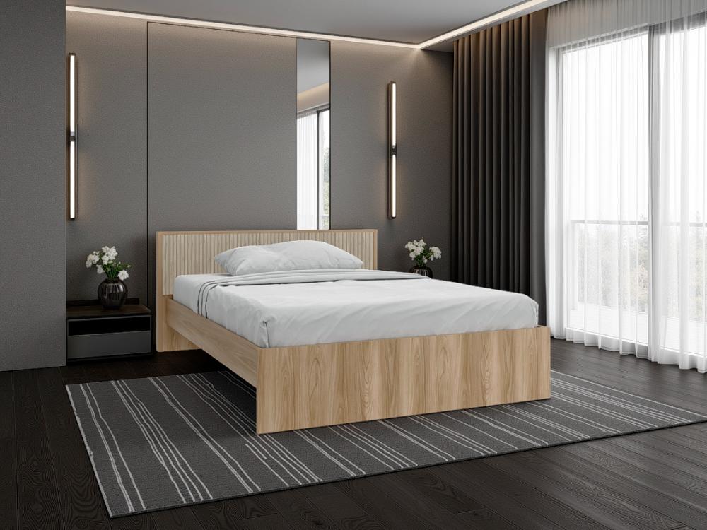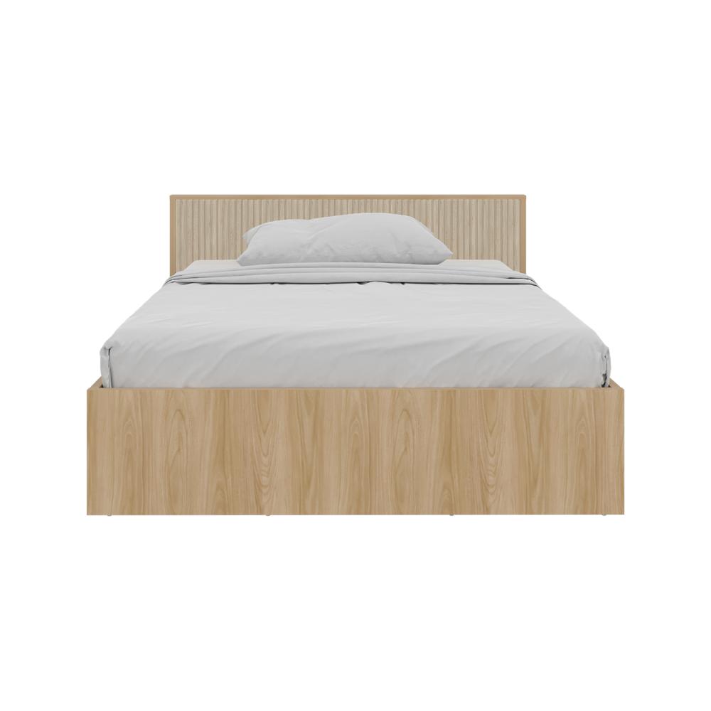 Cama Doble Wandda, Fresno Europeo y Roble Natural, incluye tendido de tablones