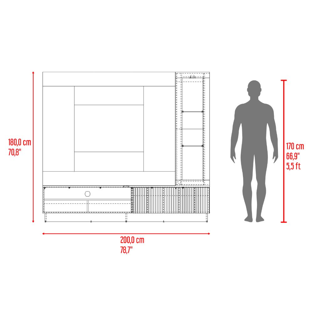 Elaborado en Madera aglomerada MDP, recubierta con láminas melamínicas de excelente calidad, en color Milan y Roble Natural.