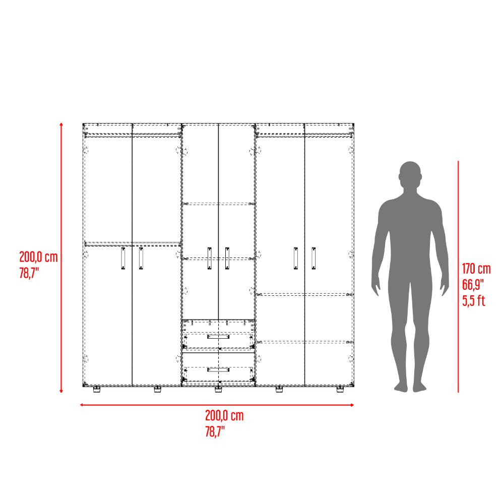 Closet Barin 200, Fresno Europeo y Wengue, con cuatro puertas abatibles
