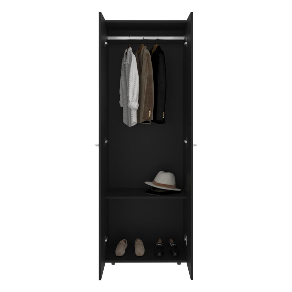Closet, con 2 puertas abatibles, 1 entrepaños, 1 Tubo para colgar, con espacio para almacenar ropa y objetos, 2 botones en aluminio y es de facil instalación.