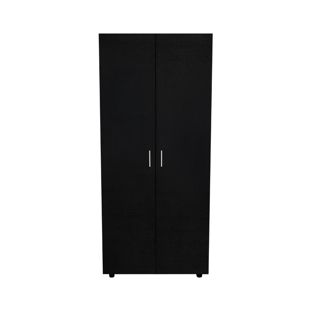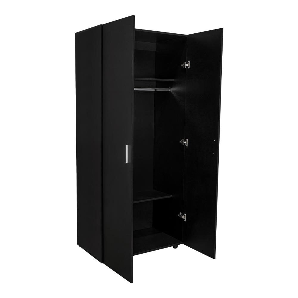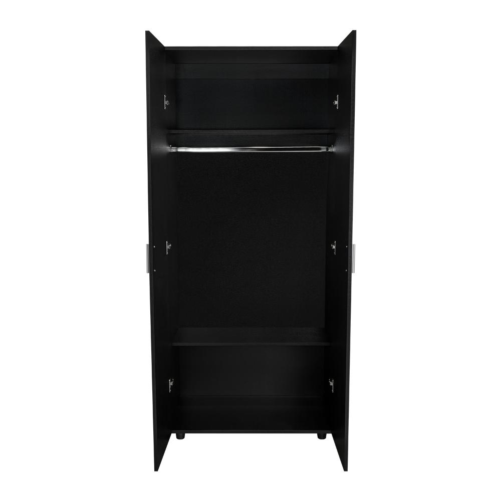 Closet, con dos puertas abatibles, manijas metálicas, un tubo para colgar prendas, amplios espacios para organizar ropa, zapatos, accesorios u otros.