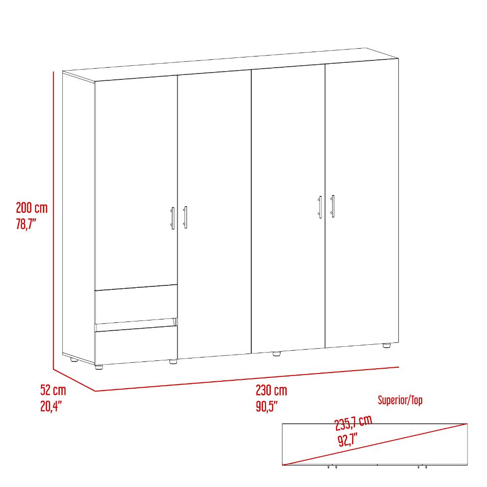 Closet Light 230, Nogal y Wengue, con dos cajones y cuatro puertas