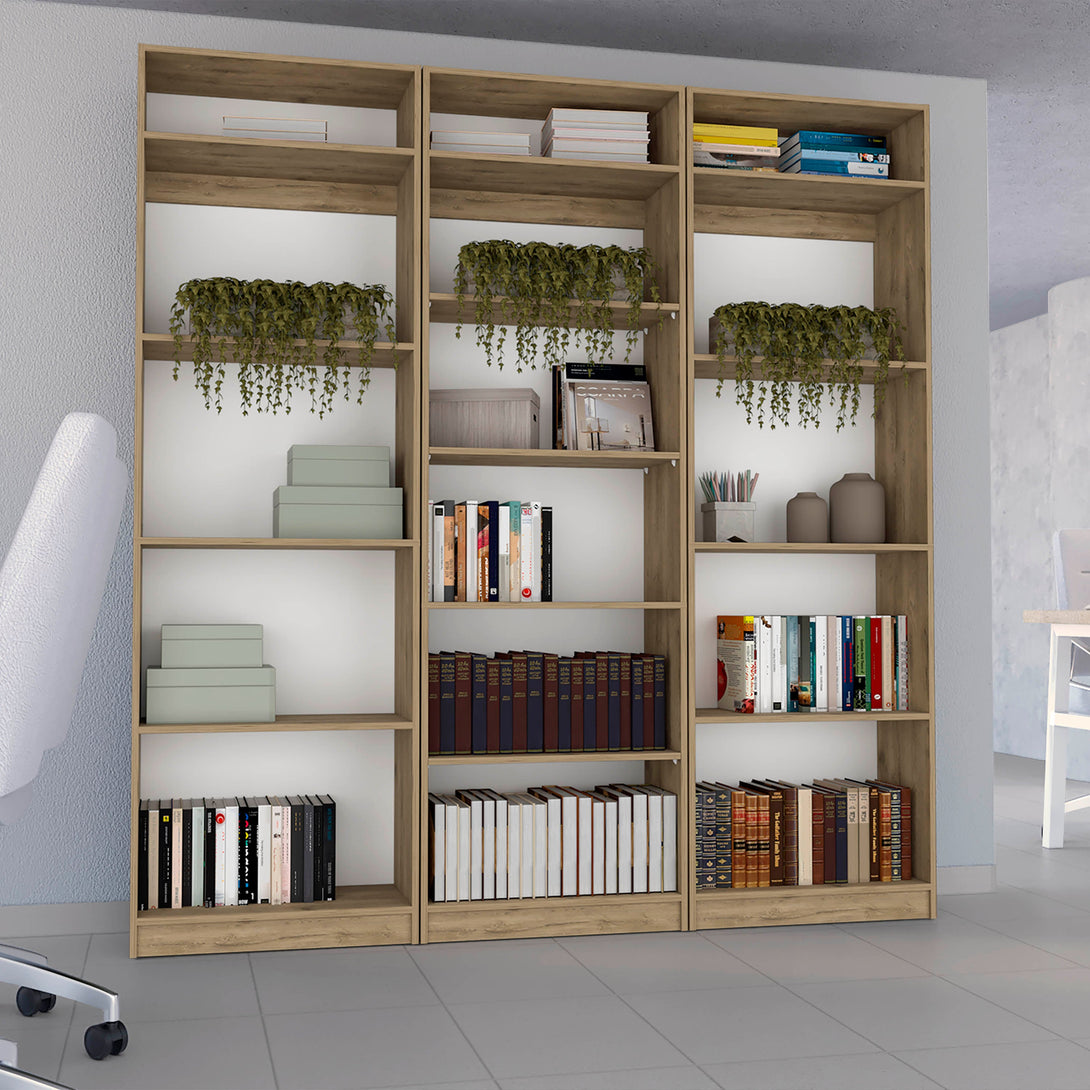 Combo de Bibliotecas Home, Macadamia, Incluye Tres Bibliotecas sin puertas y Tres Complementos
