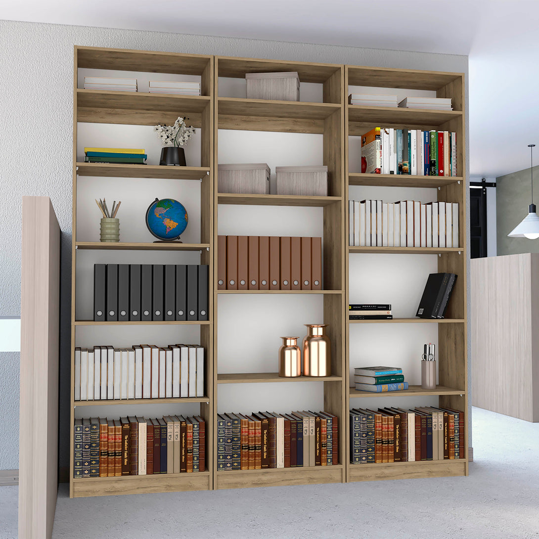Combo de Bibliotecas Home, Macadamia, Incluye Tres Bibliotecas sin puertas y Tres Complementos