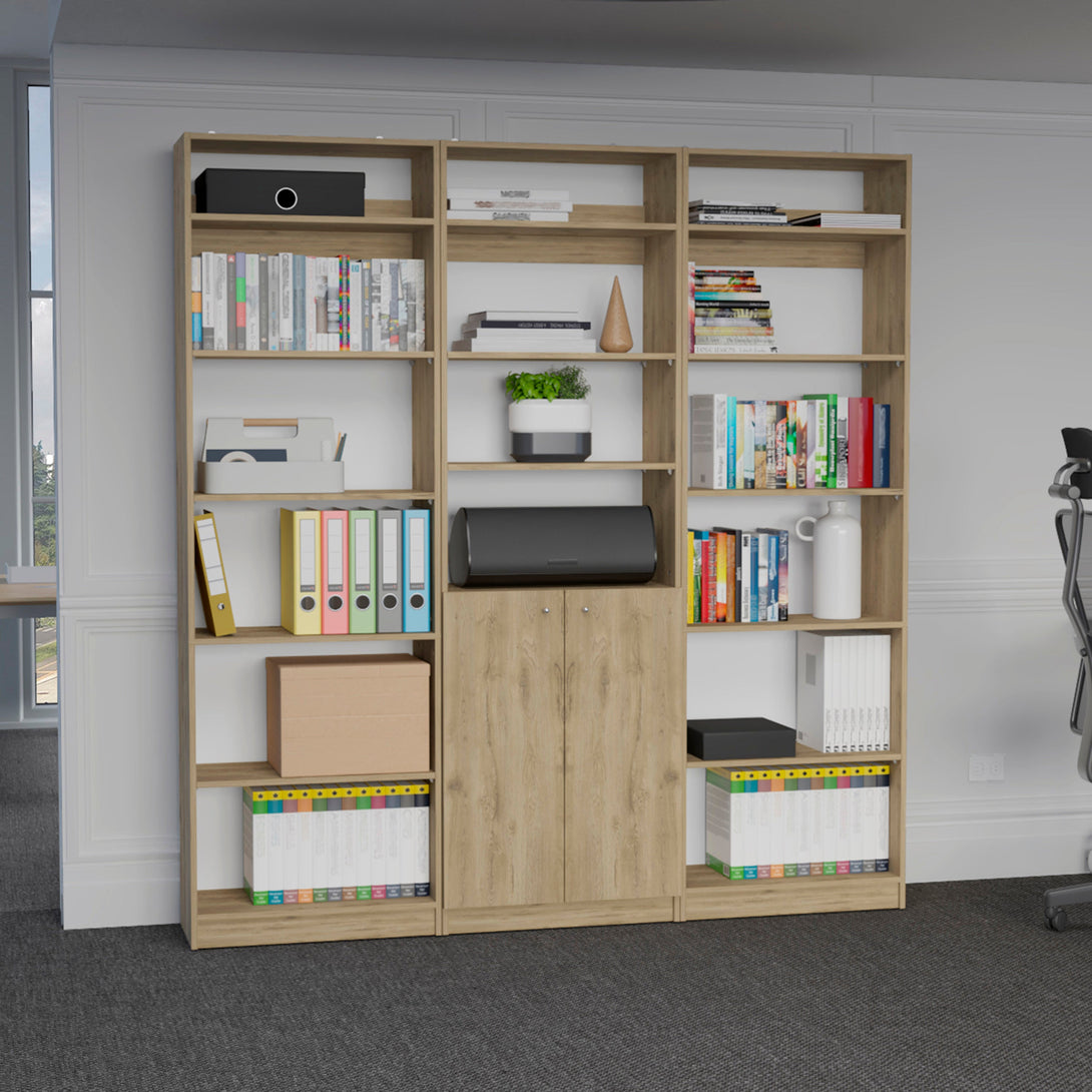 Combo de Bibliotecas Home, Macadamia, Incluye Tres Bibliotecas y Tres Complementos