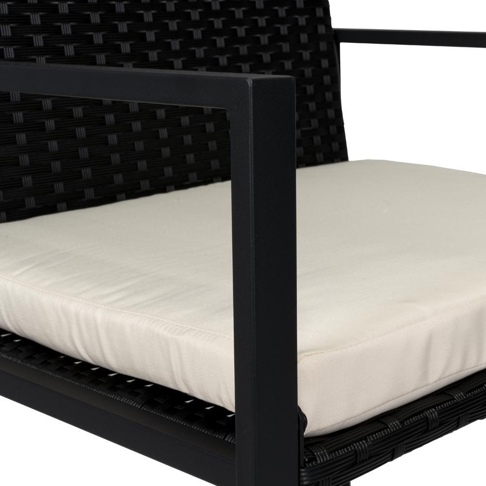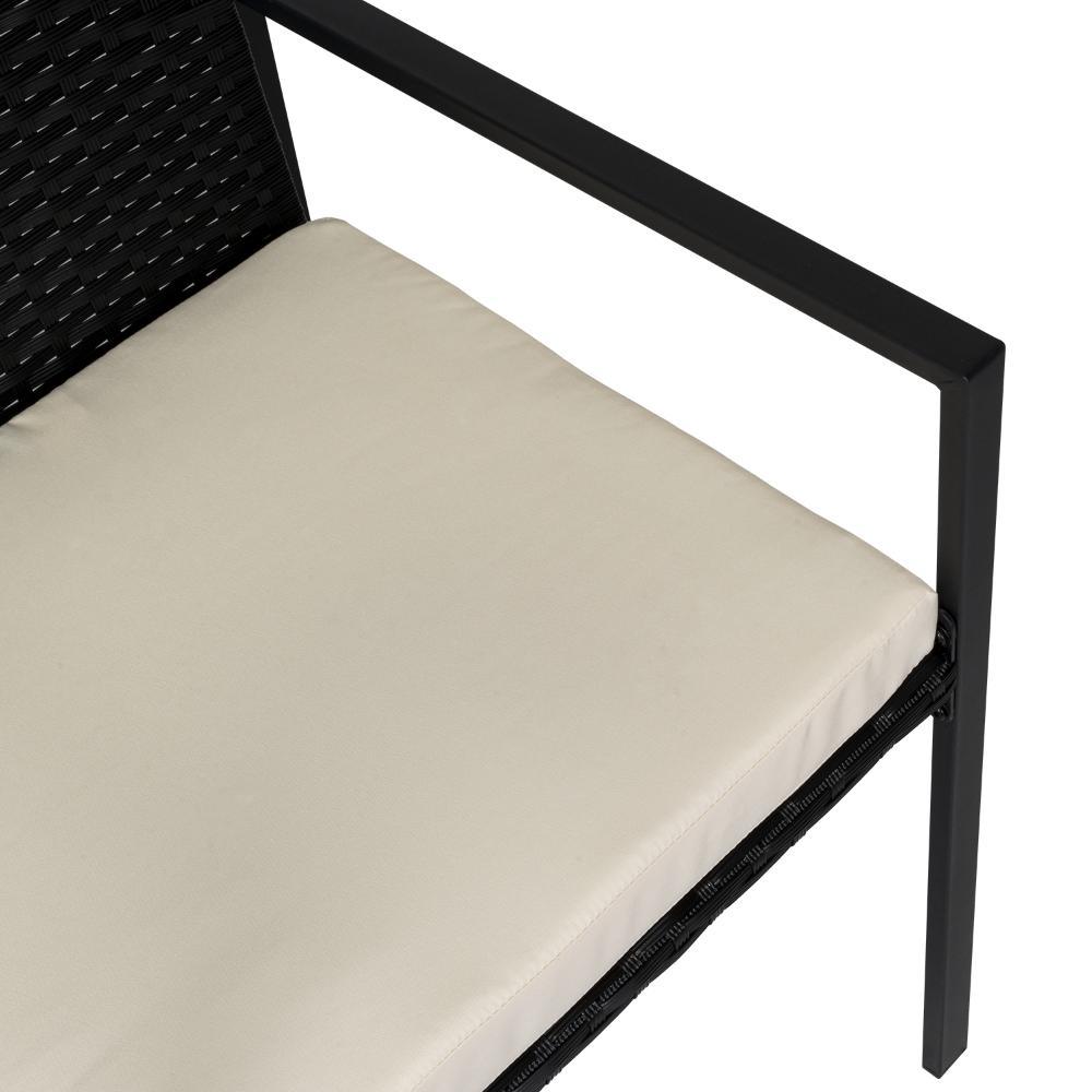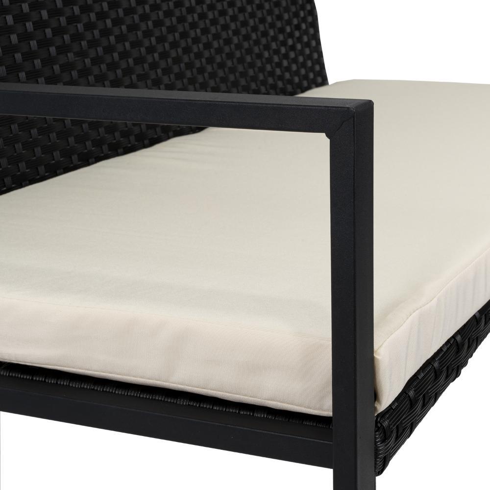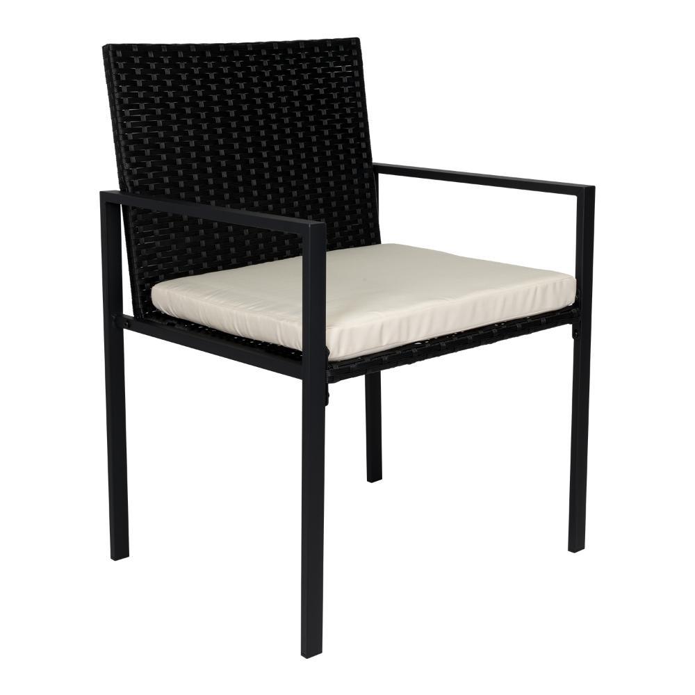 Elaborado en Rattan Sintético el set incluye mesa y tres sillas de una plaza, en Color Negro y Blanco.