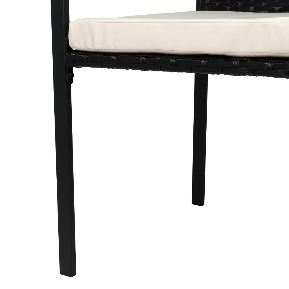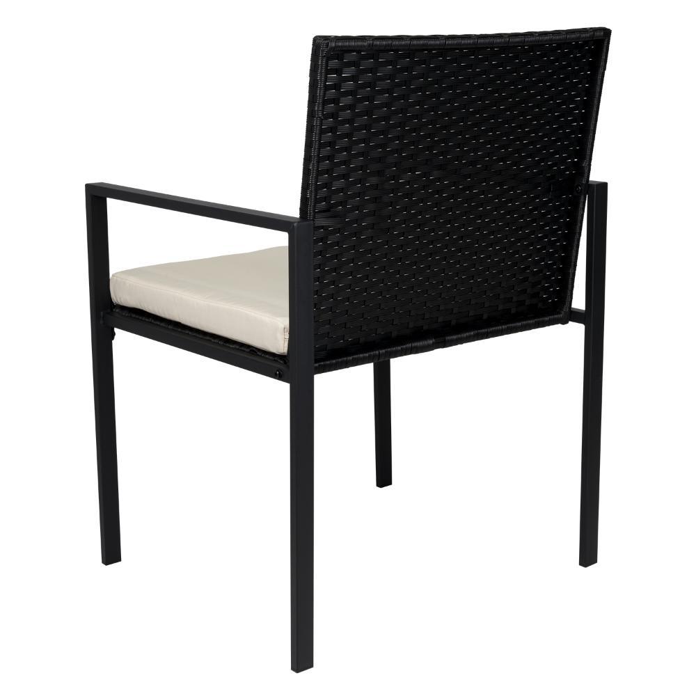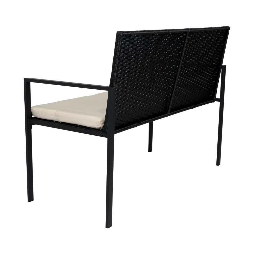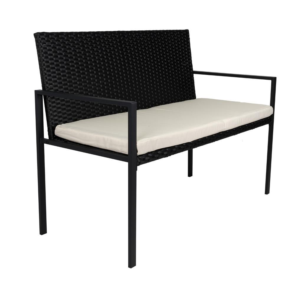 Elaborado en Rattan Sintético el set incluye mesa y tres sillas de una plaza, en Color Negro y Blanco.