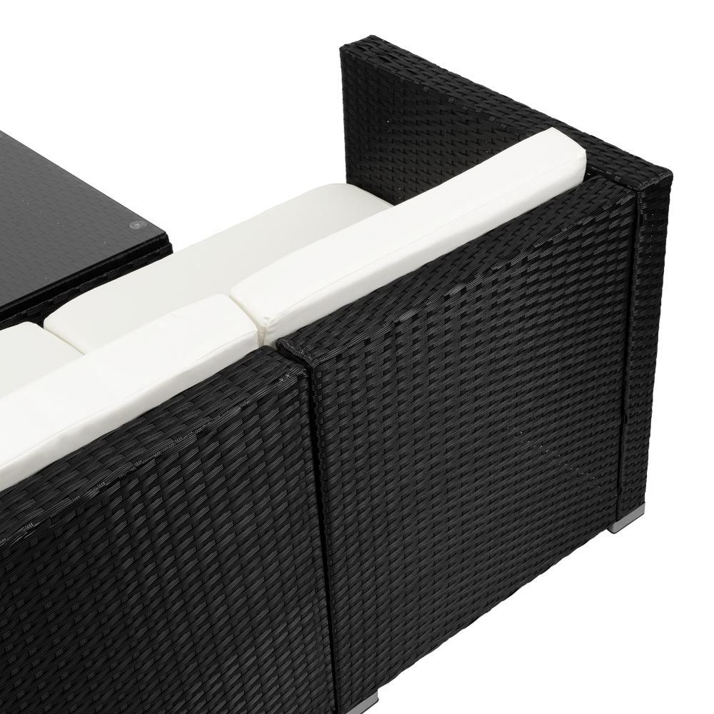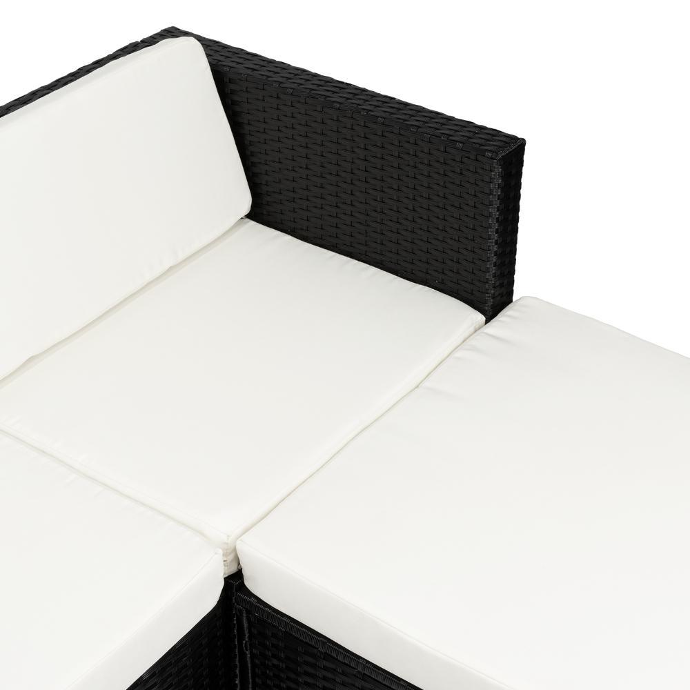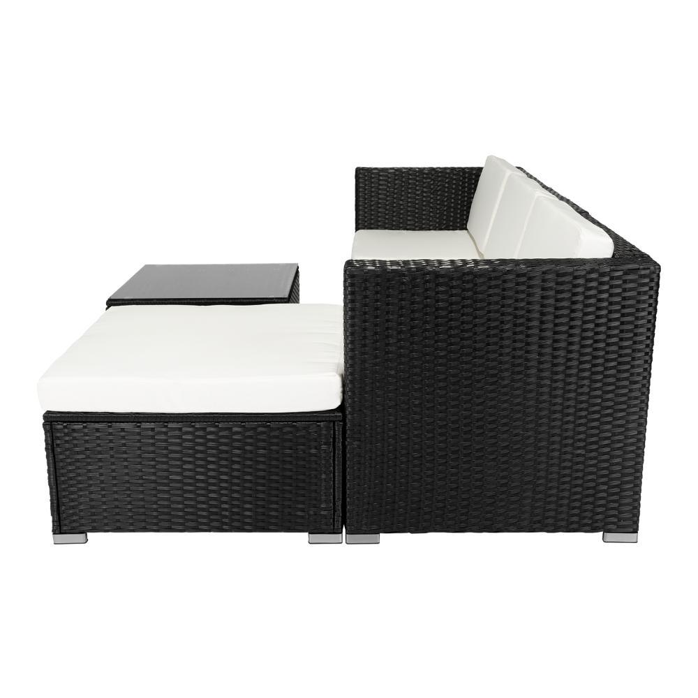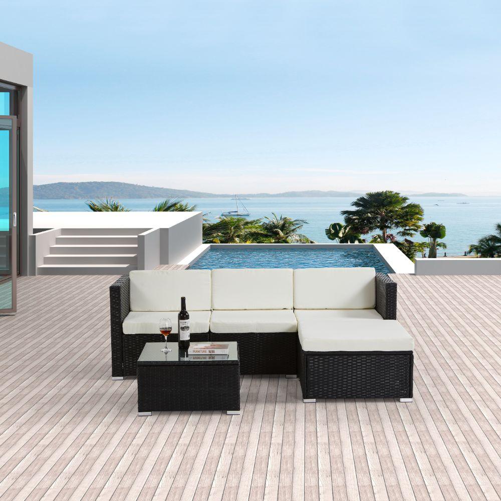 Elaborado en Rattan, Plástico el set incluye mesa y cuatro sillas, en Color Negro y Blanco.