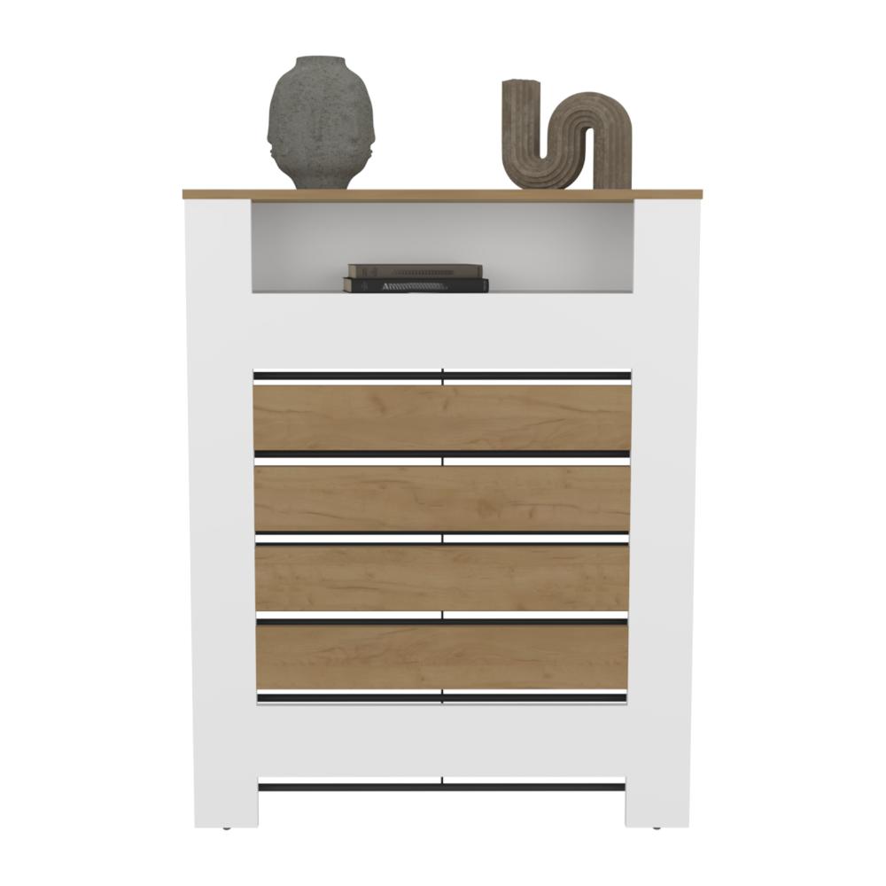 Elaborado en Madera aglomerada MDP, recubierta con láminas melamínicas de excelente calidad, en color Blanco Duqueza y Fresno Europeo.