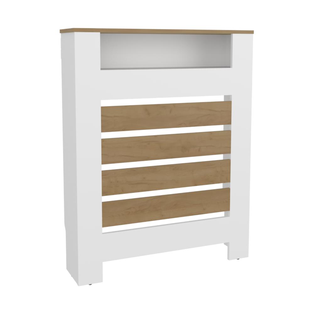Cubierta para Radiador Mistral, Blanco Duqueza y Fresno Europeo, cuenta con espacio para colocar objetos decorativos ZF