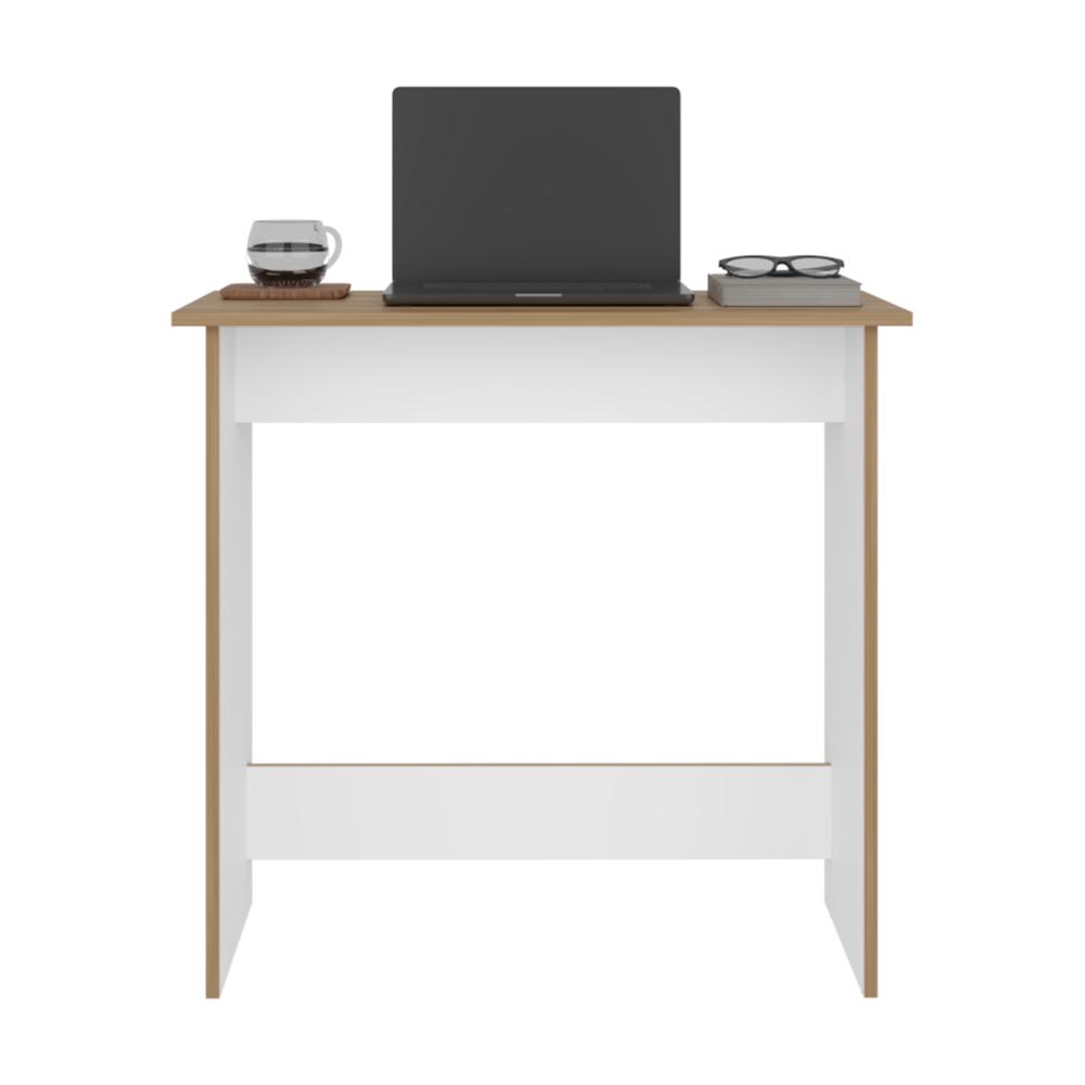 Escritorio Ben Eco, Fresno Europeo y Blanco, con superficie para objetos decorativos