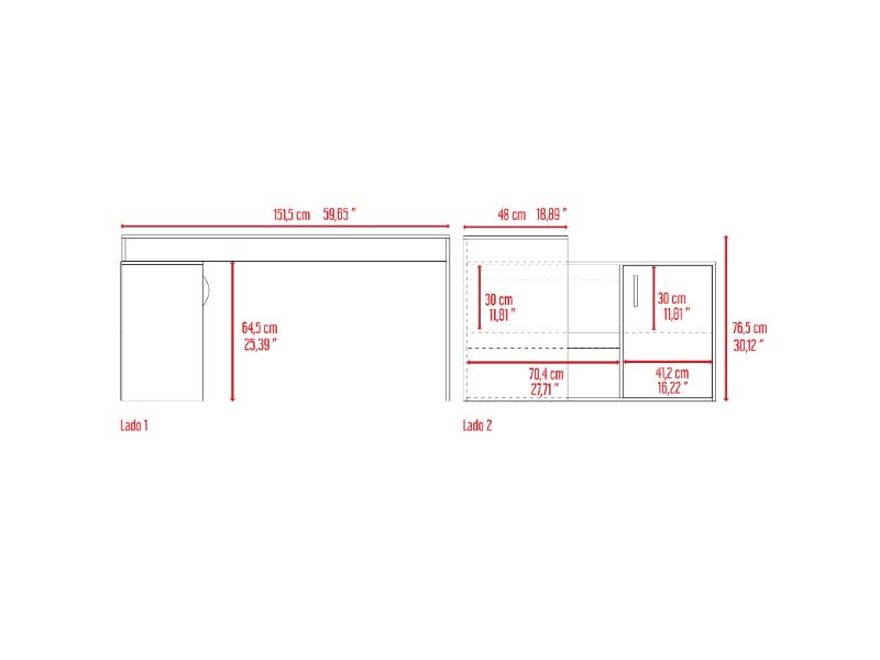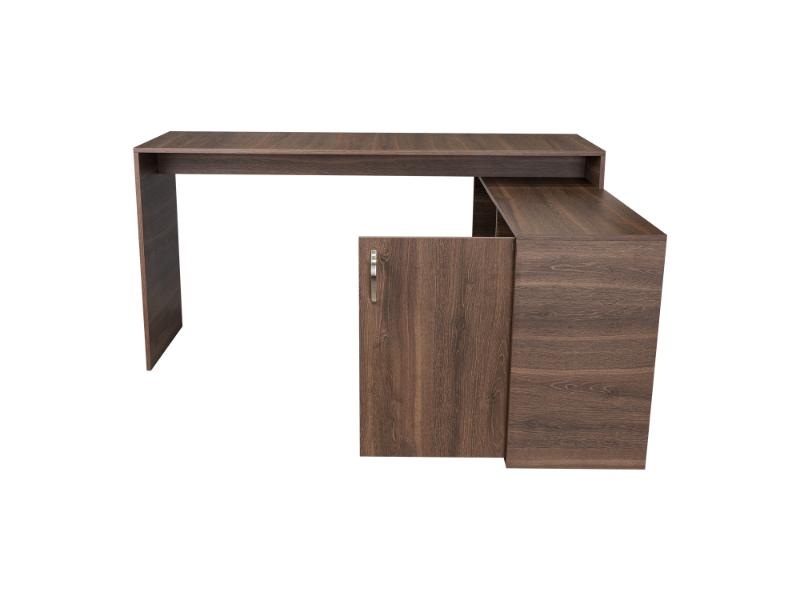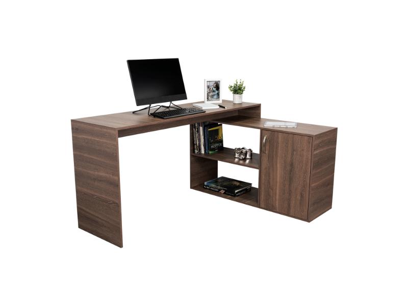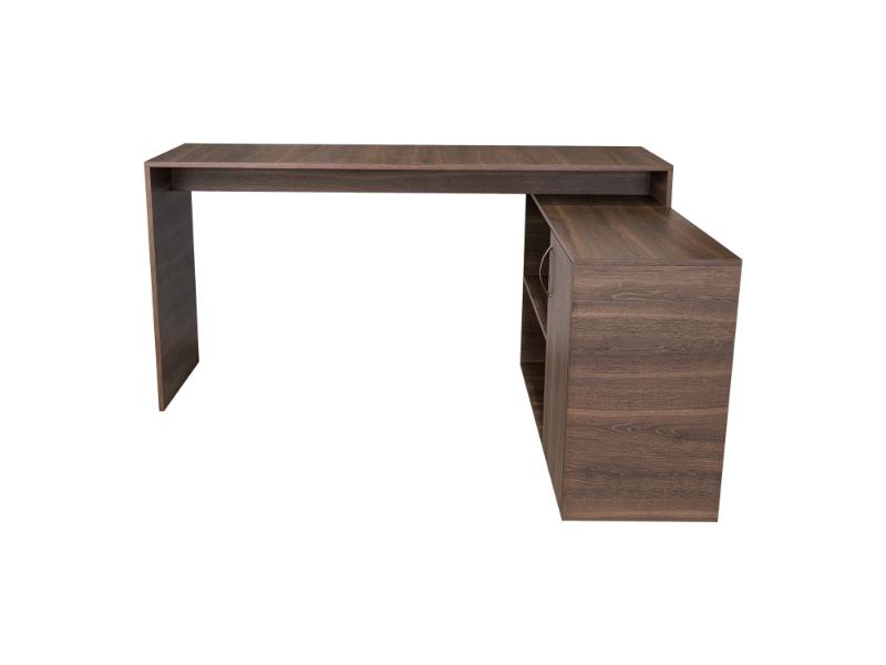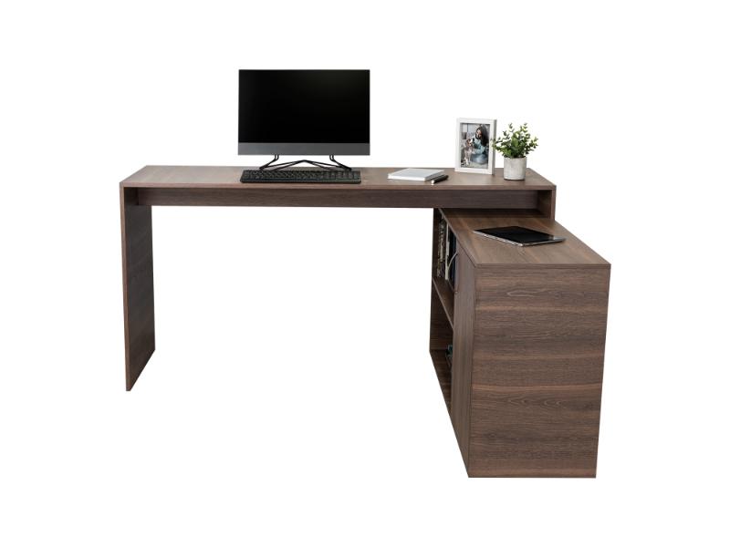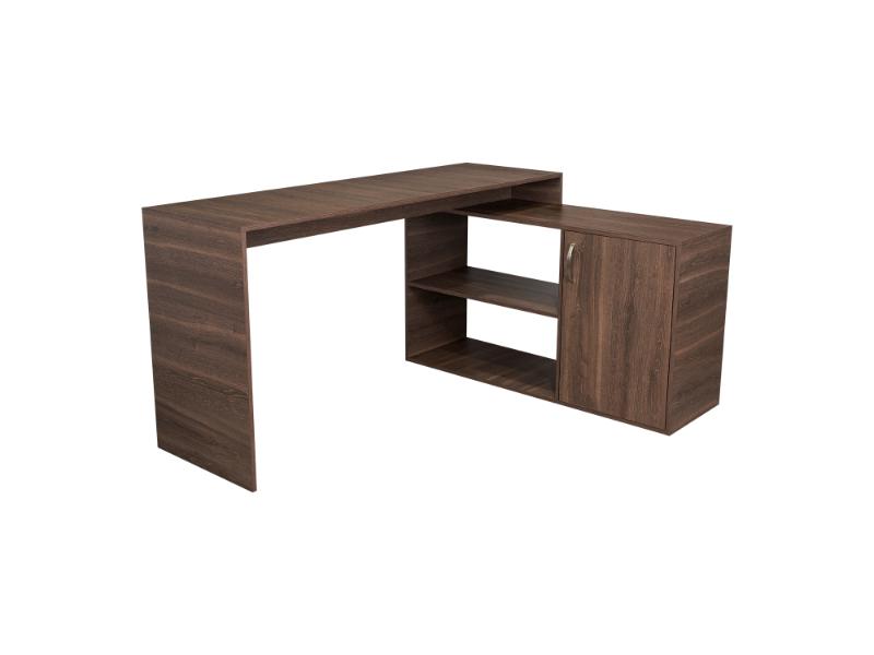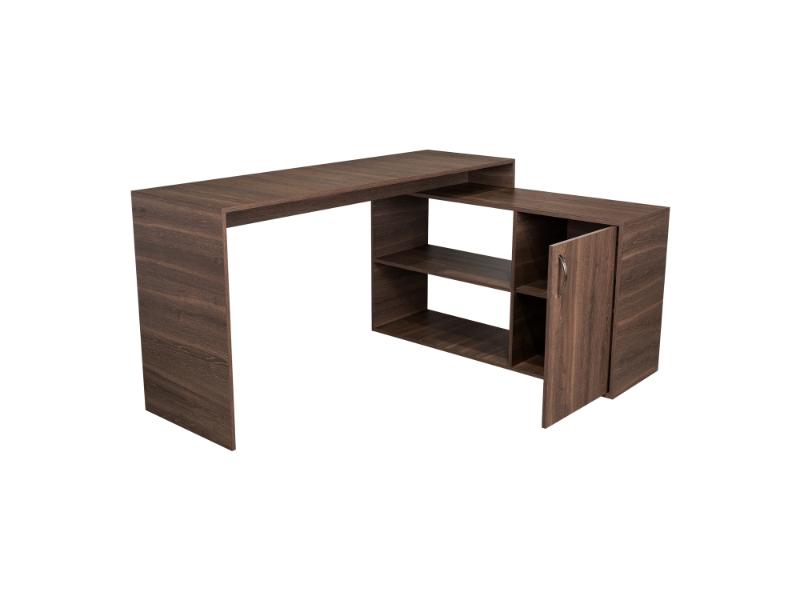 Escritorio en L, con espacio, puerta batiente para almacenar libro u otro, y