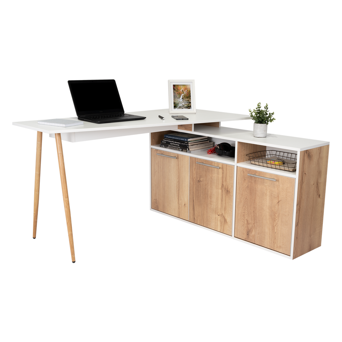 Escritorio En L Singapur, Café Claro y Blanco, con Tres Puertas Batientes