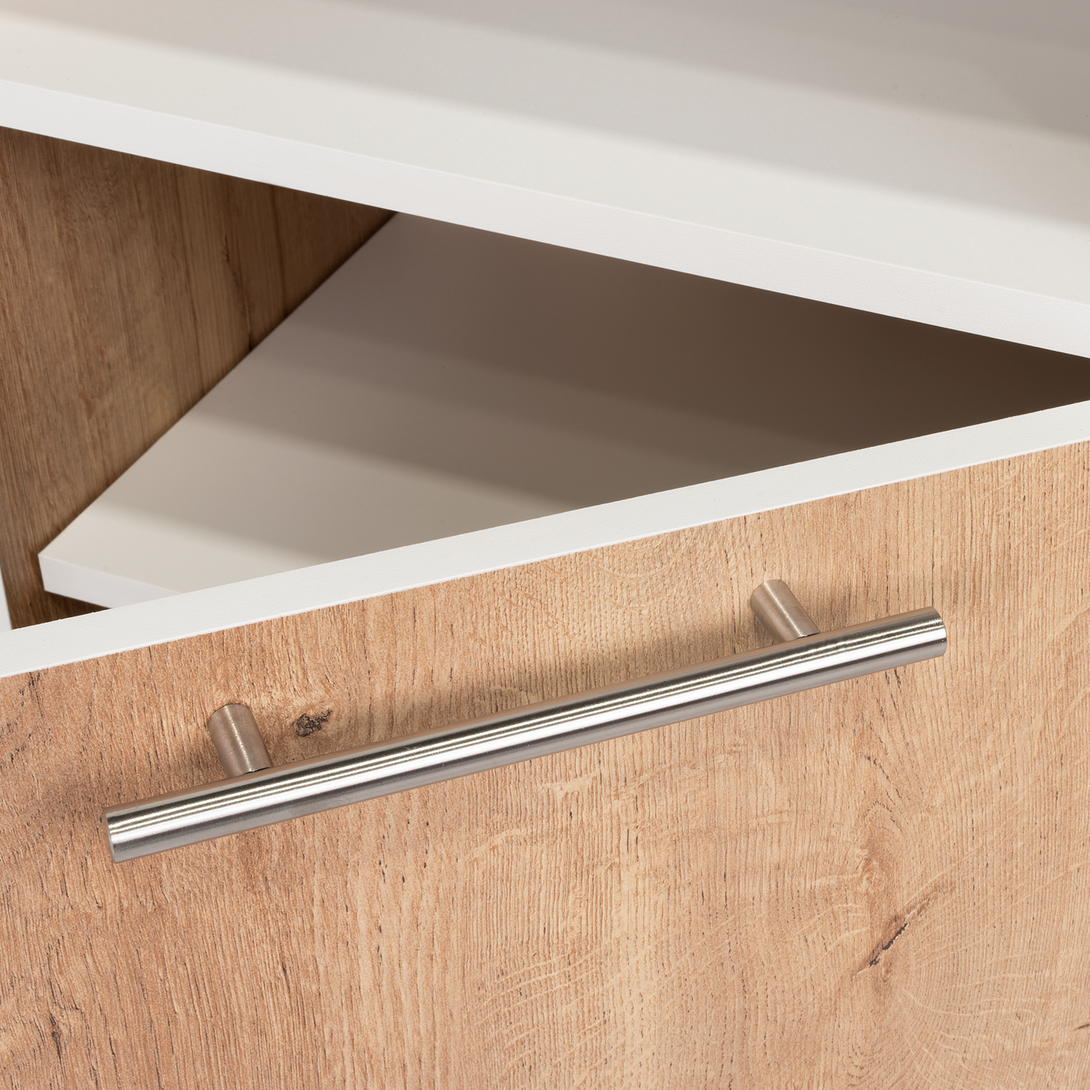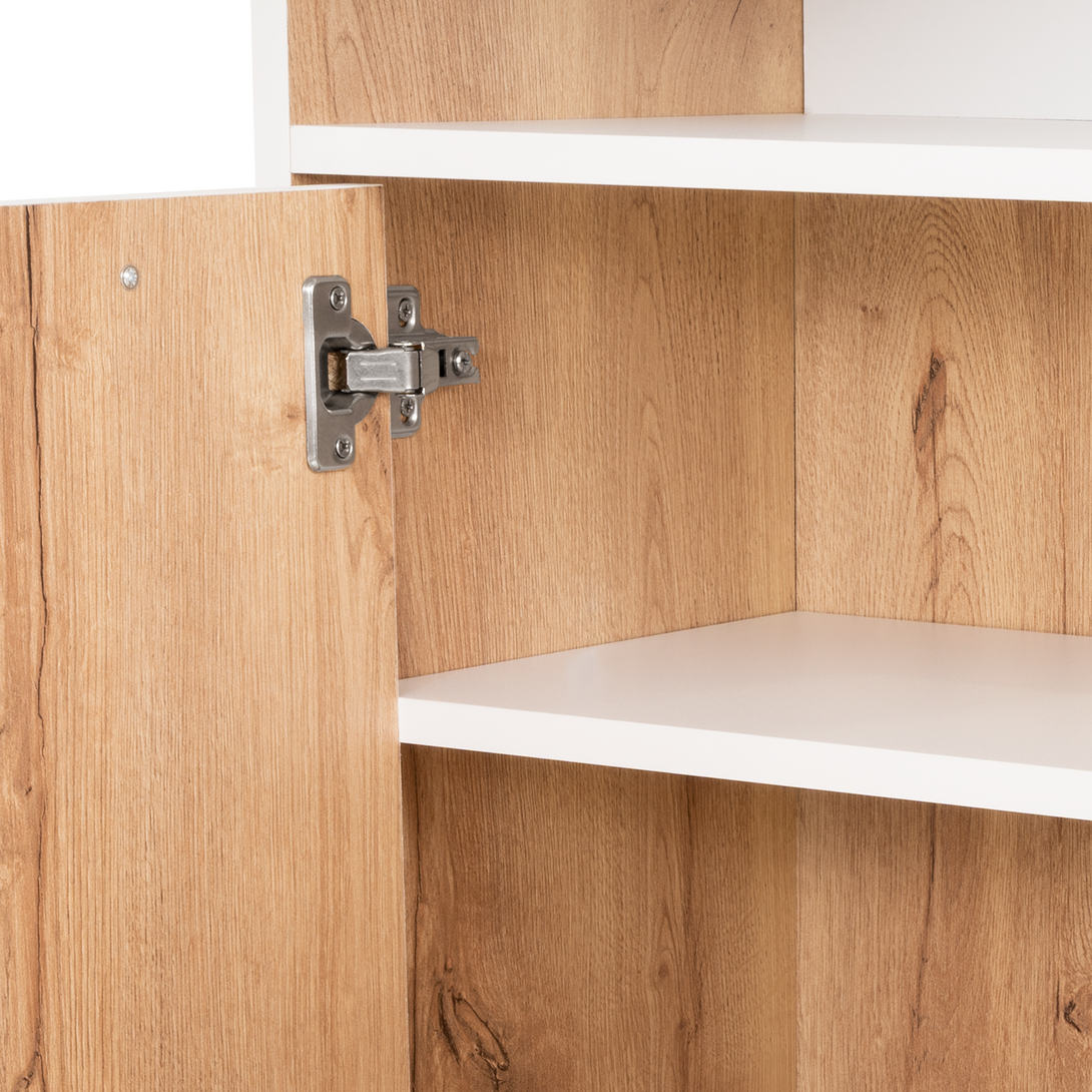 Elaborado en Madera aglomerada MDP, recubierta con láminas melamínicas de excelente calidad, en color Café Claro y Blanco